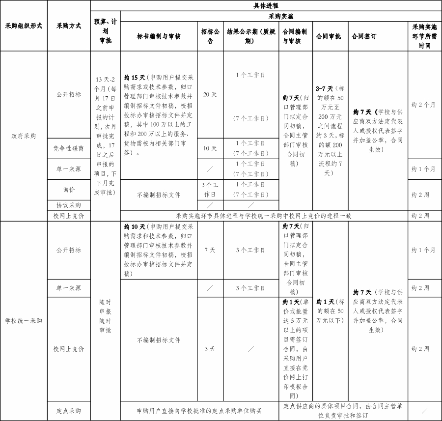 2、采购与招投标活动有其法定的时间周期,且周期较长,请各单位(部门)预留充裕的时间用于采购与招投标。