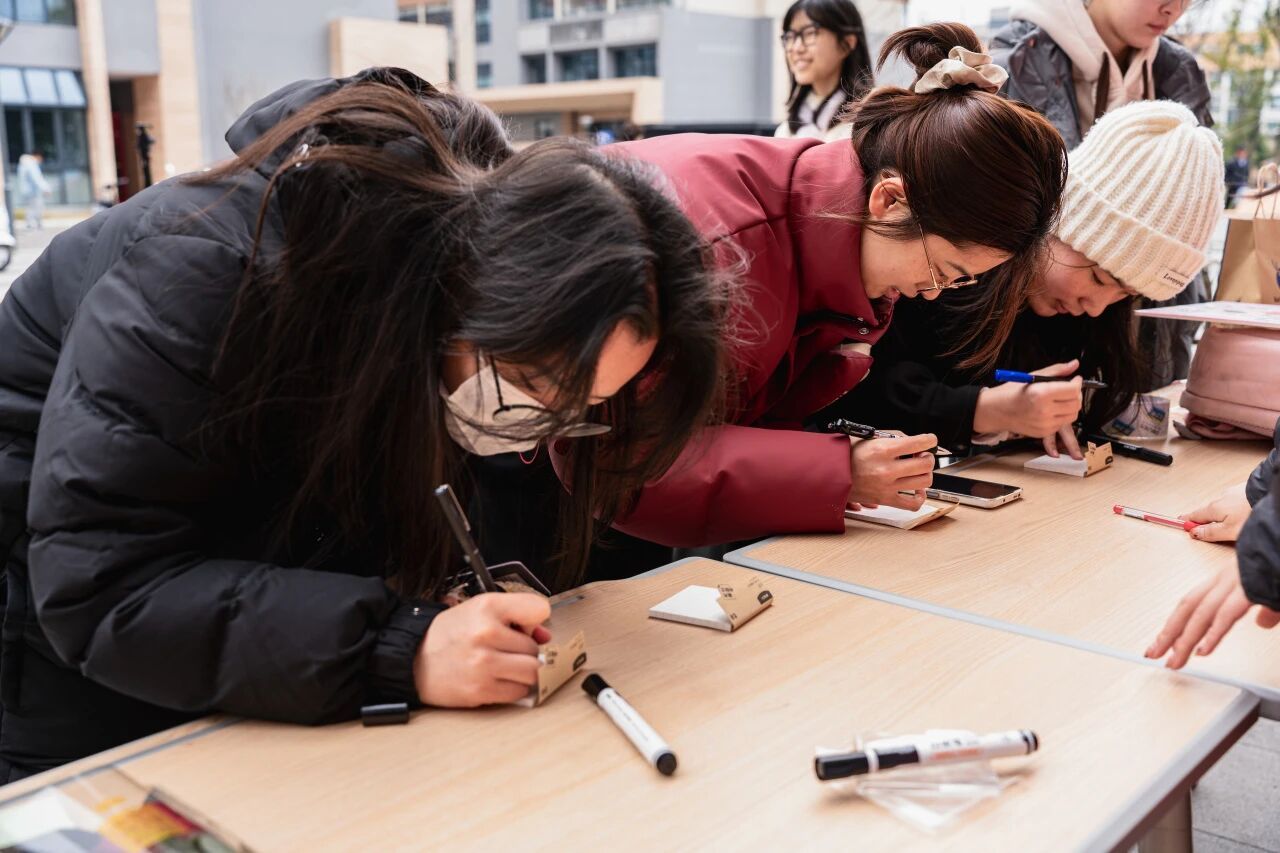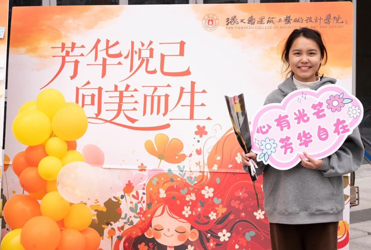 活动设立“芳华悦己 向美而生”互动墙,让女生用笔墨书写理想状态,用摄影定格最美瞬间,做不被定义的人,做闪闪发光的自己。本次活动受到了大家的欢迎和支持,近百名女生在粉橙相间的展板前驻足,都在kt板上写下了自己的祝愿。