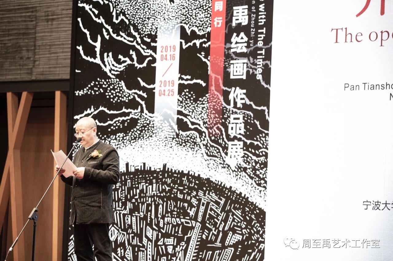 “与时代同行——周至禹绘画作品展”开幕式上,宁波市政协副主席、民建浙江省委会副主委、民建宁波市委会主委张明华,天天看小说