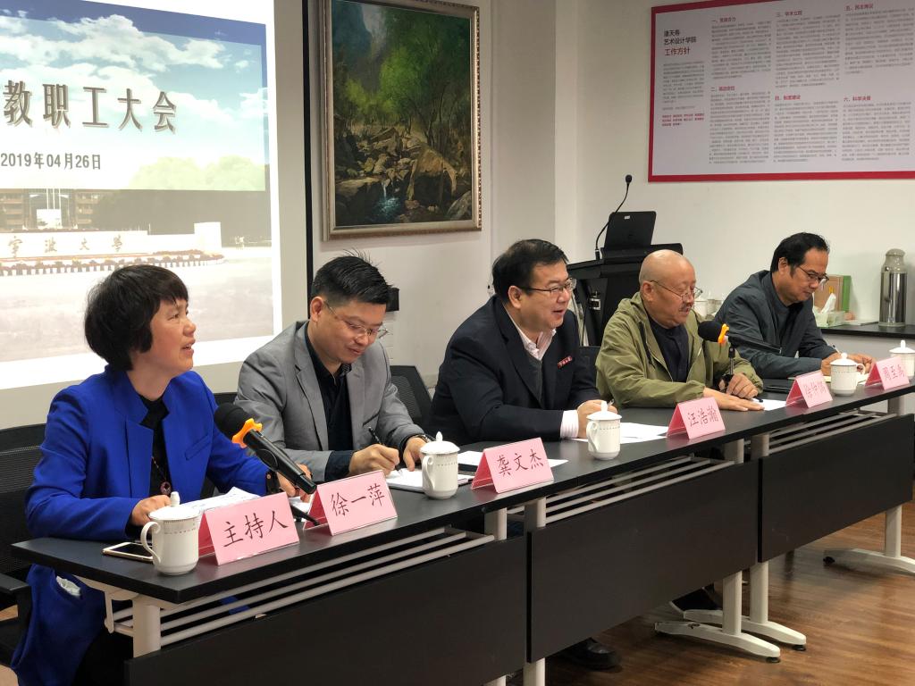 我院特聘院长徐仲偶教授随后代表学院作表态发言,欢迎建筑系加入潘艺学院大家庭,支持学校从“双一流”建设发展大局出发,高瞻远瞩地调整建筑与艺术合二为一的决定,今后将进一步梳理理念与思路,促进建筑系与学院的深度融合和共同发展。