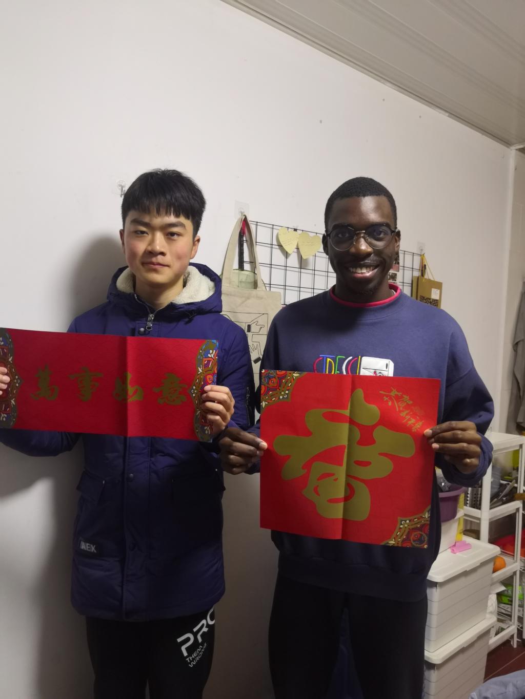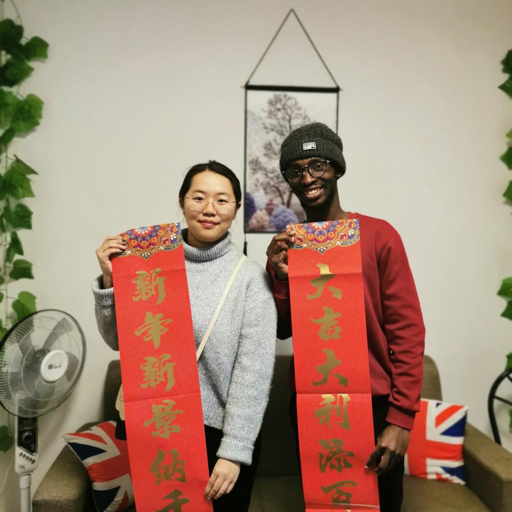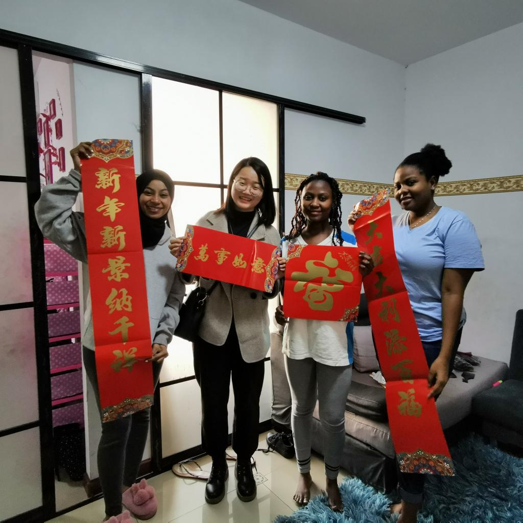 值春节放寒假之际,充分考虑中国传统节日的重要性及来华留学生教育的特殊性,学院学工办留学生辅导员吴越老师带领学生会留学生部的同学们,创新开展寒假走访留学生校外住宿(共计36人),送春联大礼包,感受春节传统文化的活动。