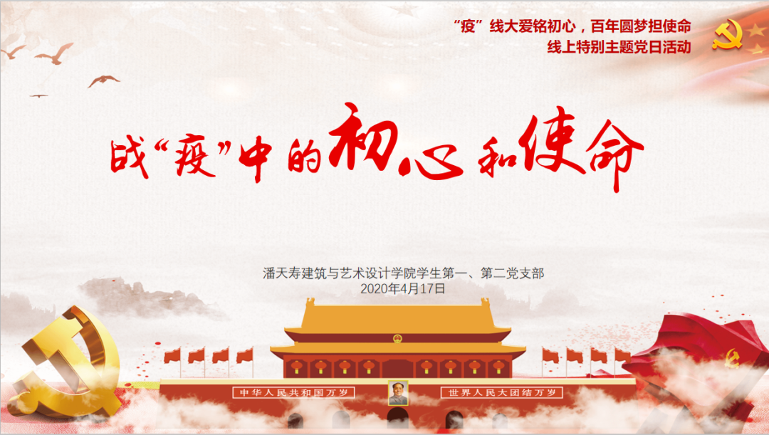 4月17日下午,学院学生第一、第二党支部联合开展了“战‘疫’中的初心和使命”线上主题党日活动,两个党支部学生党员共60余人参与本次活动,部分入党积极分子一同在线观摩。学校主题党日活动评审观摩团、学院党委副书记刘秉印、组织员牛百文参加了此次活动。