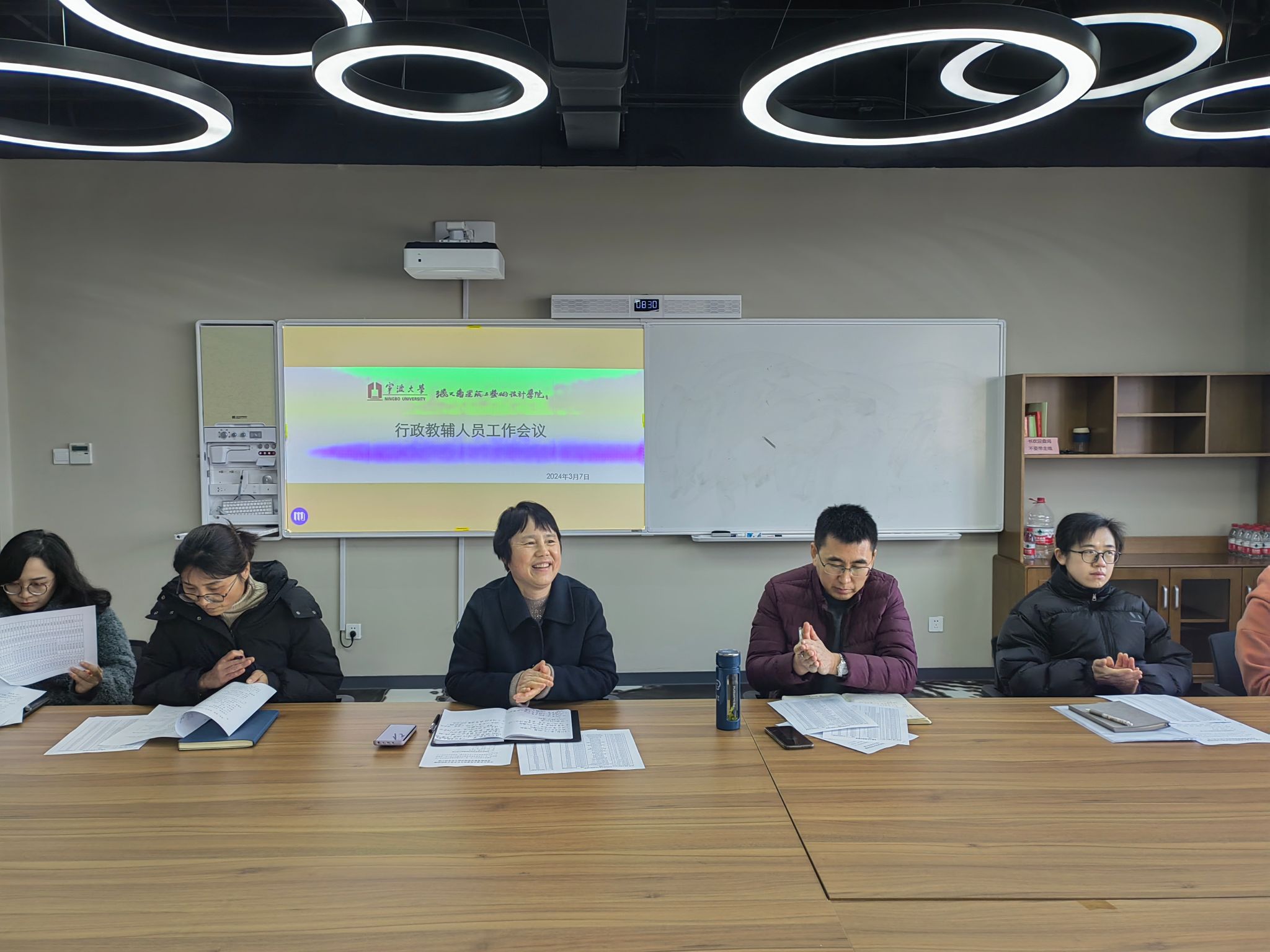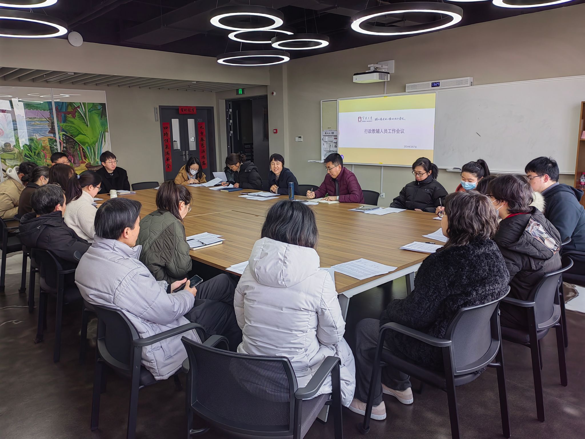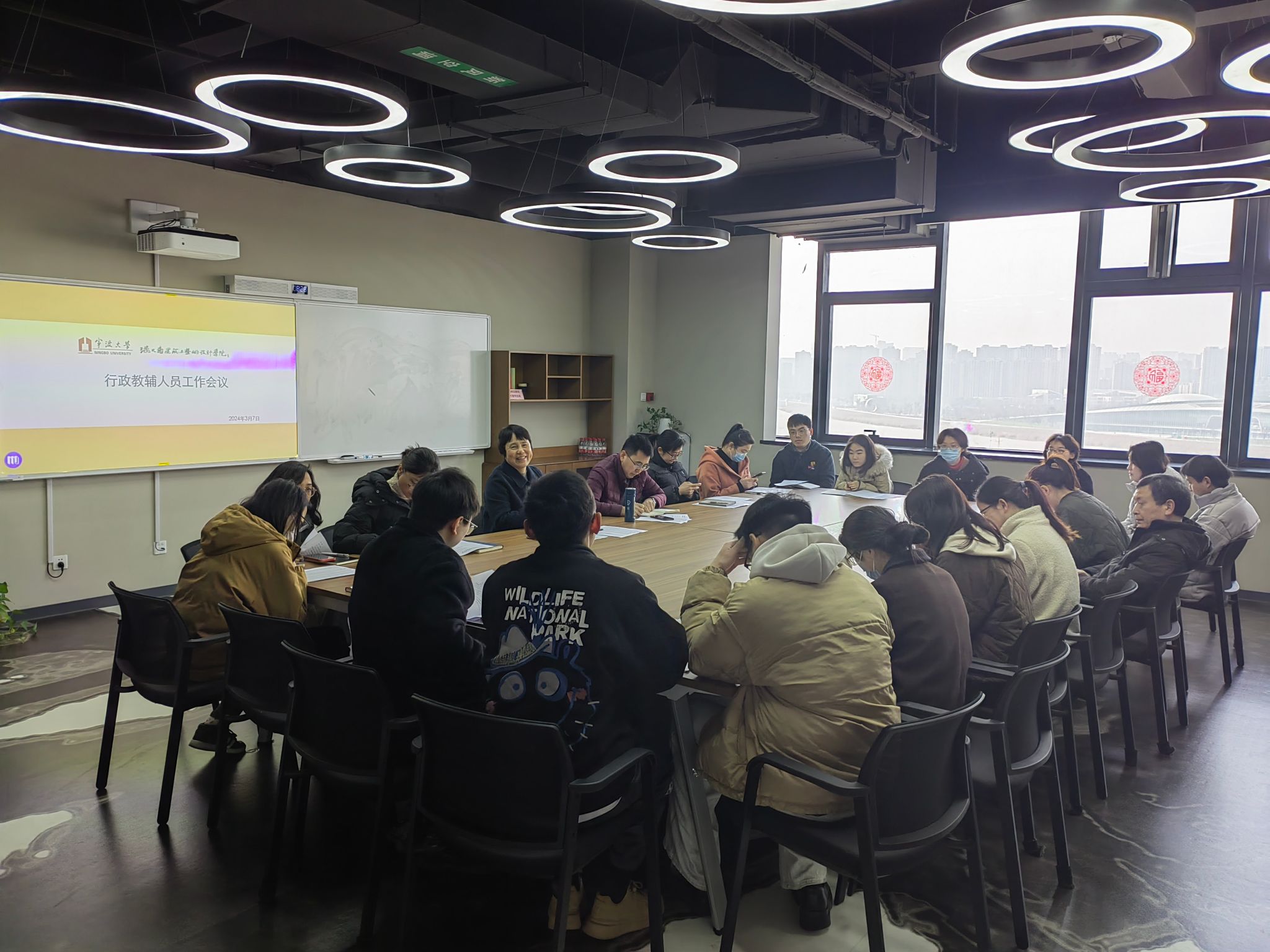 在学院7楼开放会议室召开新学期行政教辅人员会议,学院党委书记徐一萍、副书记刘秉印出席会议,学院全体行政教辅人员参会。