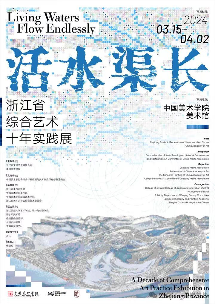 3月15日上午,“活水渠长——浙江省综合艺术十年实践展”在中国美术学院美术馆隆重开幕。此次展览由浙江省文学艺术界联合会、中国美术学院主办,杨劲松为策展人,许江做为学术主持。许江在致辞中表示生活的活水已经成为广渠,源源而来,生生不息。这正是展题“活水渠长”的意涵。