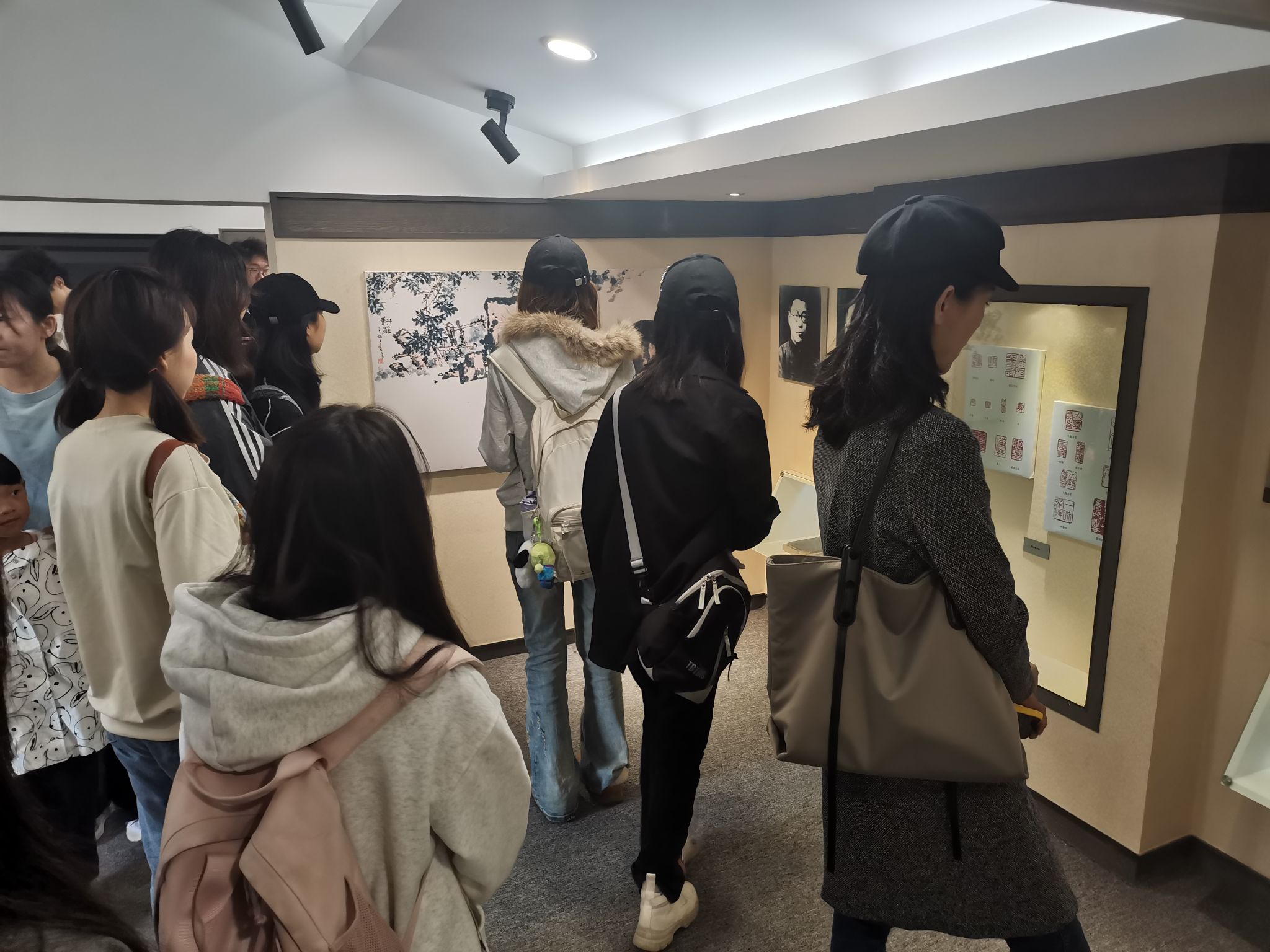 在潘老先生的故居中,同学们穿梭在充满古韵的阁楼里了解了潘老先生从幼儿到暮老,从青萍之末到烈日高阳的的人生历程。走过他的书房,看着他的字迹,凝视着陪他从古自今的器具,恍惚间同学们身上也多了一股水墨的气息,好似更深刻的理解了潘老先生的画作。明白其一笔一划都是学问,半纸半墨皆是奋斗,看懂了潘老先生在那个动荡的年代为国学尤其是国画的出路进行的斗争。