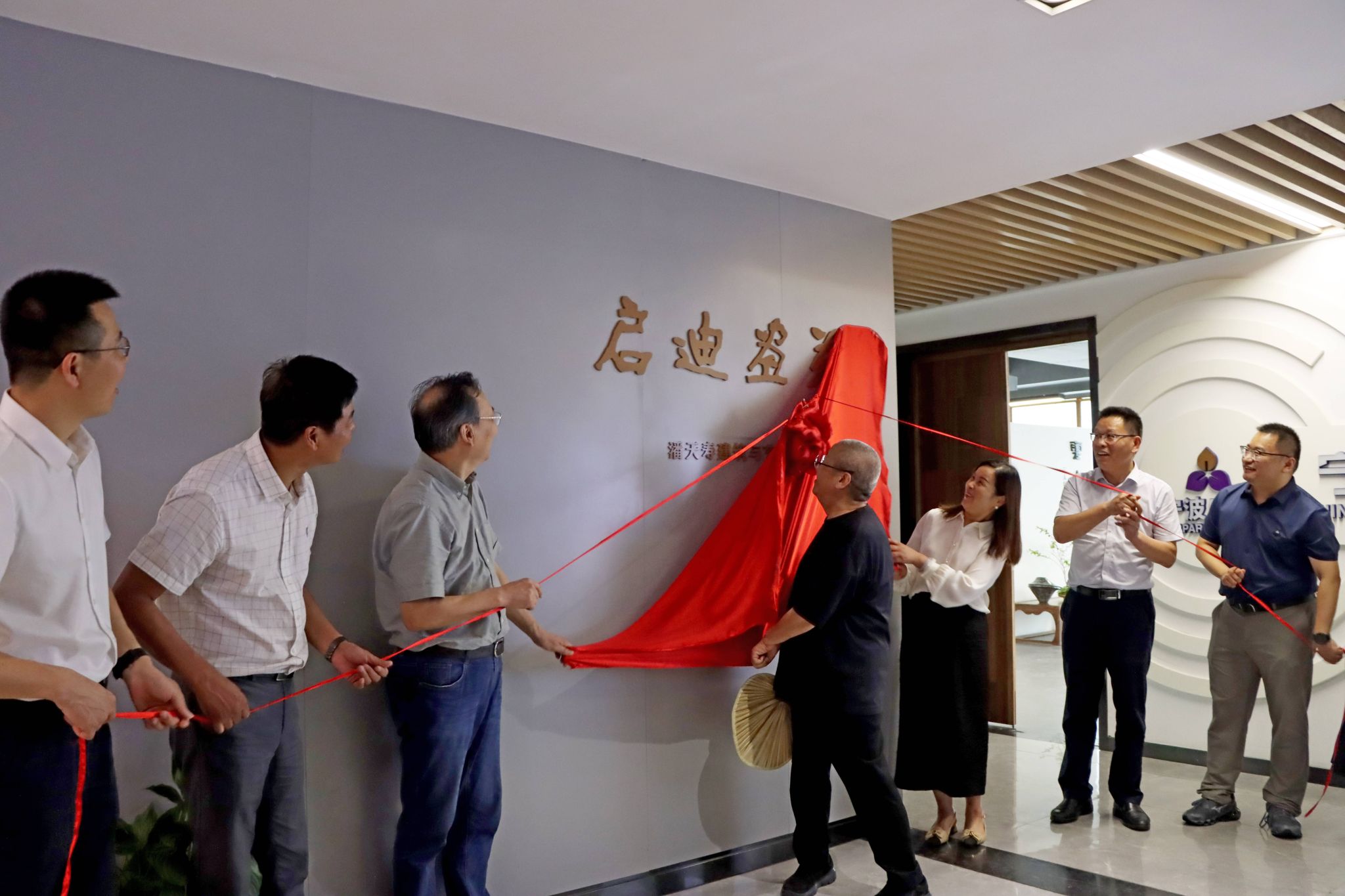 党委书记韩雯琛,镇海区委宣传部常务副部长林世军,镇海区庄市街道党工委副书记、办事处主任徐益军,镇海区文联副主席、三级调研员徐崇禧,宁波启迪总经理戴璐共同为启迪画苑(天天看小说