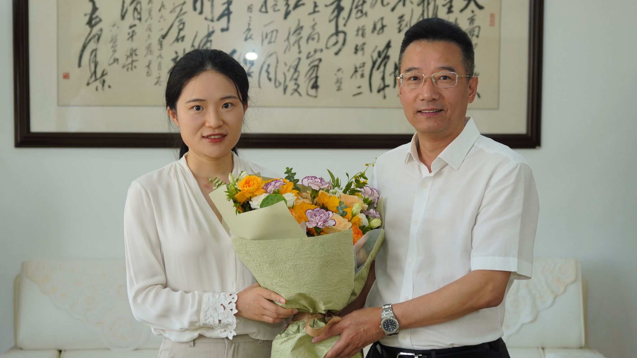 8月1日,校党委书记朱达、副校长李伟平亲切慰问了载誉归来的徐入云老师。朱达向徐入云表示热烈祝贺,对她扎实和过硬的教学能力给予充分肯定,并且希望徐入云老师认真总结教学和参赛经验,发挥带头作用,在学校形成示范效应。朱达认为教育教学需要高度责任心和事业心,还要先进的教育理念、扎实的学术水平和高超的教学能力,要求学校上下用力践行习近平总书记的教书育人观,坚定不移培育“有理想信念、有道德情操、有扎实学识、有仁爱之心”的“四有”好老师,期待学校涌现出更多的教学名师、教学能手,落实好高校立德树人的要求。