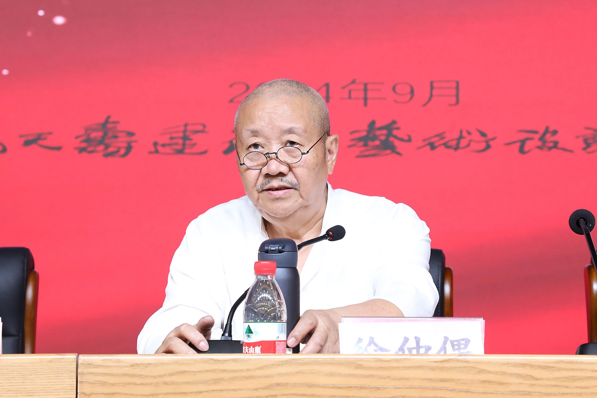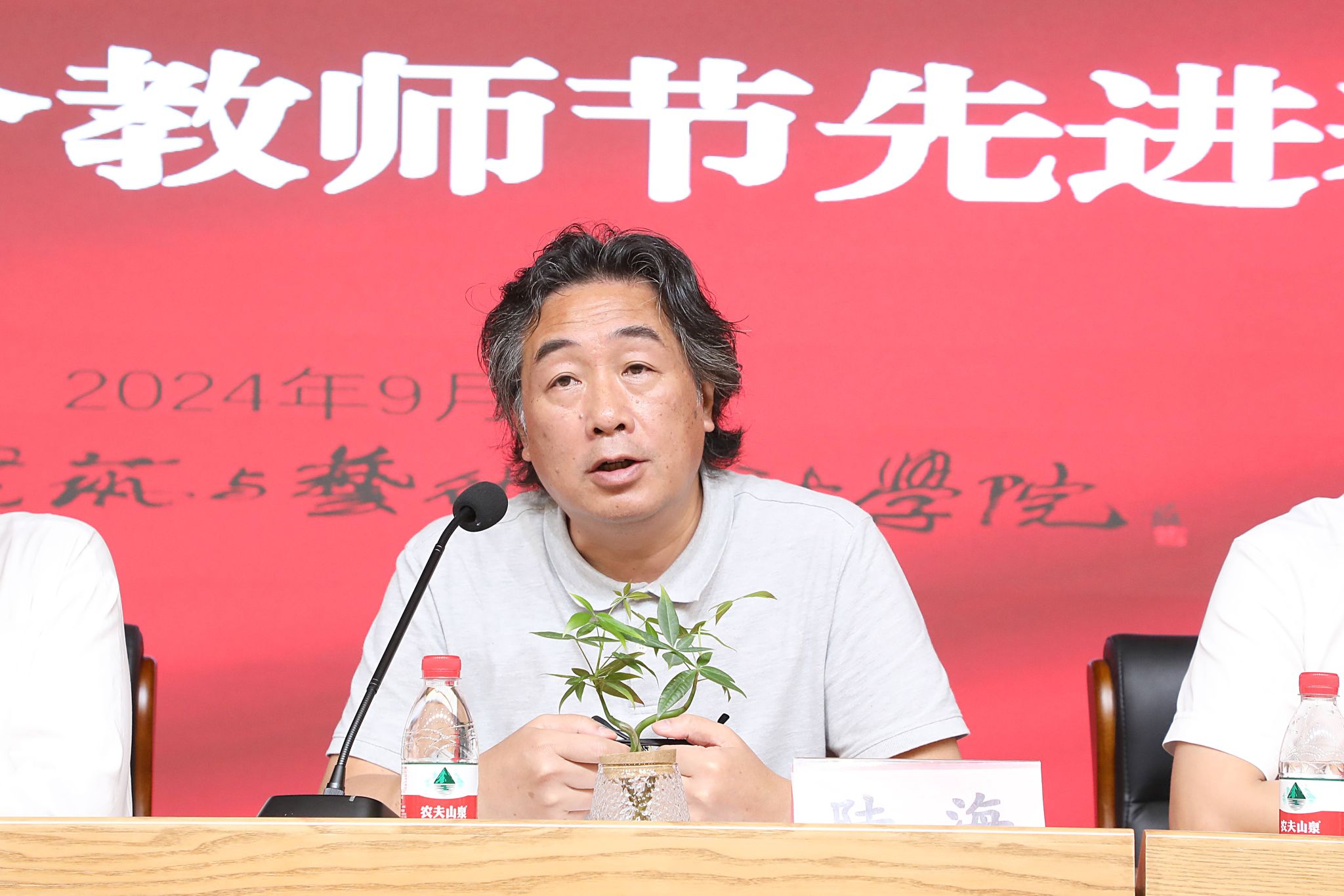 颁奖仪式后,由特聘院长徐仲偶讲话,他指出我们要牢牢记住名誉院长潘公凯先生提出的“要快”“要精”“要深”这三点要求,用新的态度、新的面貌、新的气象,促进学院不断前进,实现新的发展。