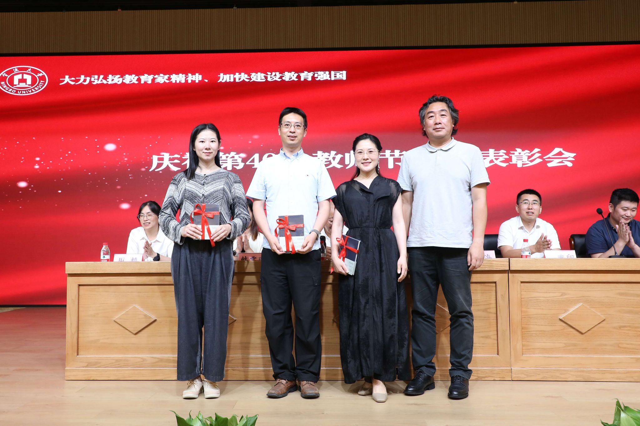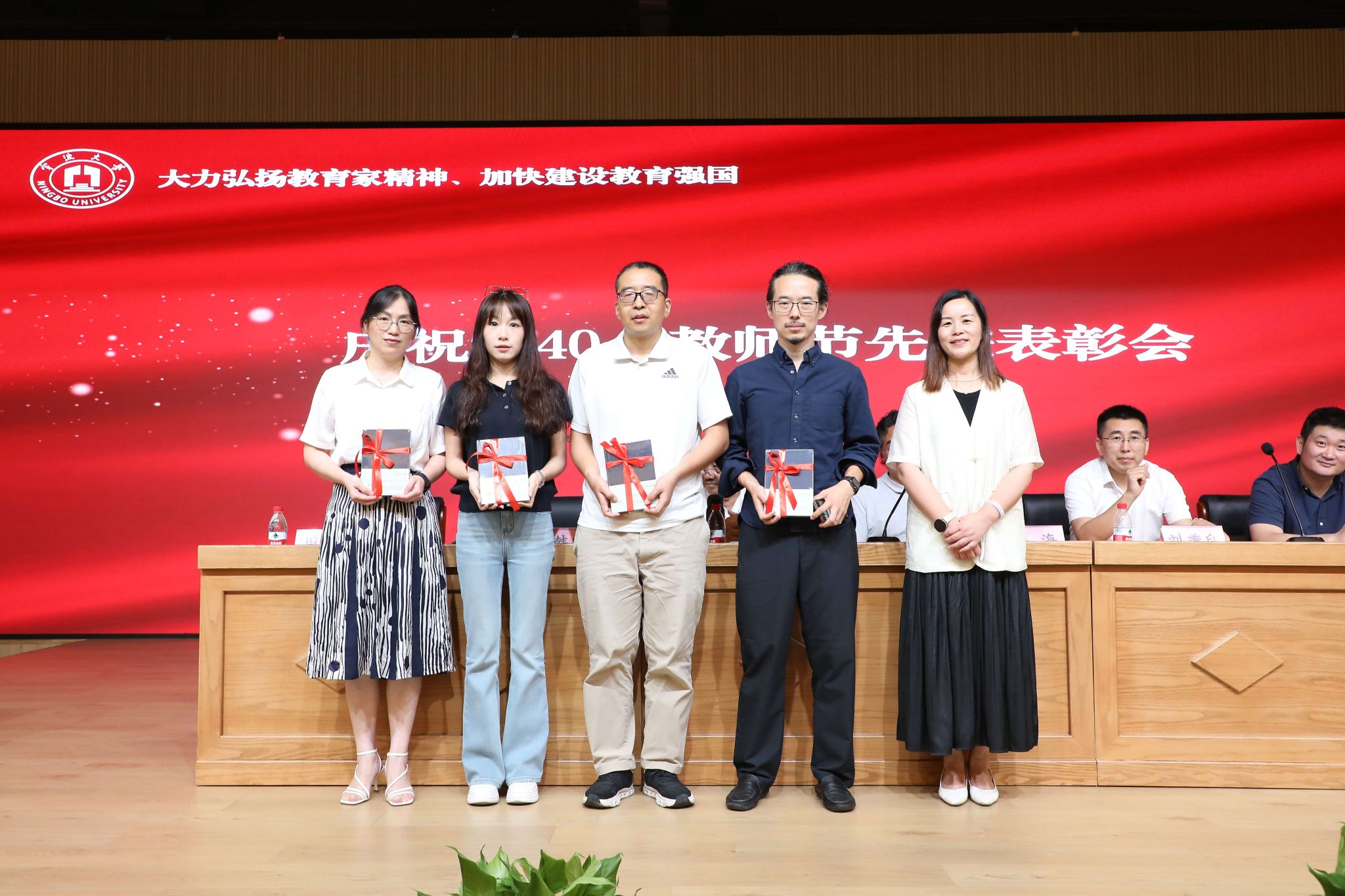 会议第一阶段为先进表彰,院领导对老师们致以节日问候,由执行院长陆海宣读上半年43位受表彰的教职工及团队名单,并举行了颁奖仪式。