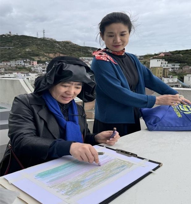 臻美设计美育工作室教师一行赴舟山嵊泗枸杞岛开展“联建走海岛,美育强国行”活动,赋能枸杞岛干斜村建设。