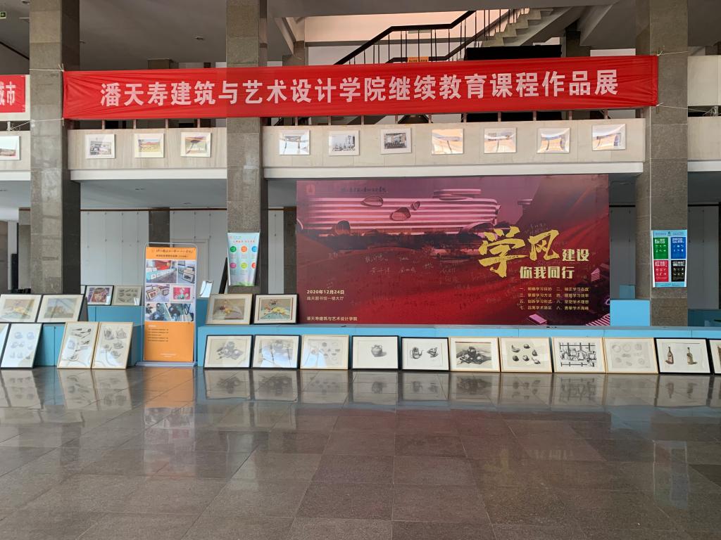 在逸夫图书馆一楼大厅举办了继续教育课程作品展。