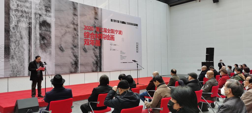 12月28日上午10时,第三届全国(宁波)综合材料绘画双年展暨中国美术家协会综合材料绘画与美术作品保存修复艺术委员会成立十周年学术研究展在宁波美术馆隆重开幕,同时学术研讨会在美术馆四楼报告厅举办,研讨会上艺委会主任胡伟教授连同多位副主任、委员和该领域学者、艺术家共同讨论我国综合材料绘画的学术界定、理论体系构建以及创作研究等方面的内容;学院学术委员会主任周至禹教授、美术系主任马善程博士、美术系副教授陈晟博士受邀参加开幕式和研讨会,多所高校师生和来自全国各地的艺术家、艺术爱好者以及市民们共同参与了这次综合材料绘画领域的盛会。本次研讨会29日上午场由马善程主持。