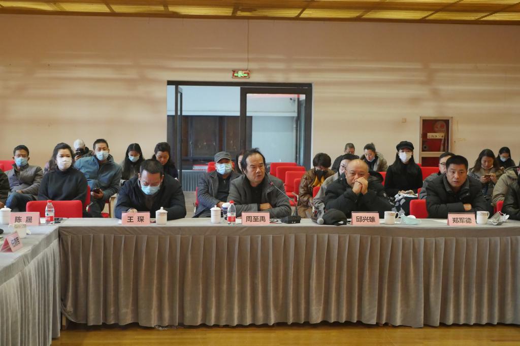 在学术研讨会上,专家轮流发言,对综合材料绘画的学术定位和发展前景进行了热烈的讨论。周至禹教授以学者型艺术家的角度对我国综合材料绘画的发展表示关切,并对其学术意涵进行了四个追问:对综合材料绘画类别的追问、对材料表现本质的追问、对原生态表述的当代性追问、对综合材料绘画中国精神的追问。周教授的发言基于中国综合材料绘画的演变和展览作品,全面而精到,颇为中肯,在艺委会胡伟主任的总结性发言中特意提出,周教授的发言直指本质,引人深思并表示赞同。马善程博士在主持过程中以良好的学术素质、恰当的导引和清晰的思路使得研讨会达成很好的讨论成效。陈晟博士作为综合材料绘画领域的青年学者在会上分享了研究的过程和心得,并以实据提出相关理论研究的滞后和紧迫性,尤其是综合材料绘画的概念和学术界限问题需要理论性阐述,同时在会上向诸位专家阐明了我院美术系的学科发展基础和方向,明确表达了依托综合类大学学术资源推动综合材料绘画实践和理论研究的意愿和设想。
