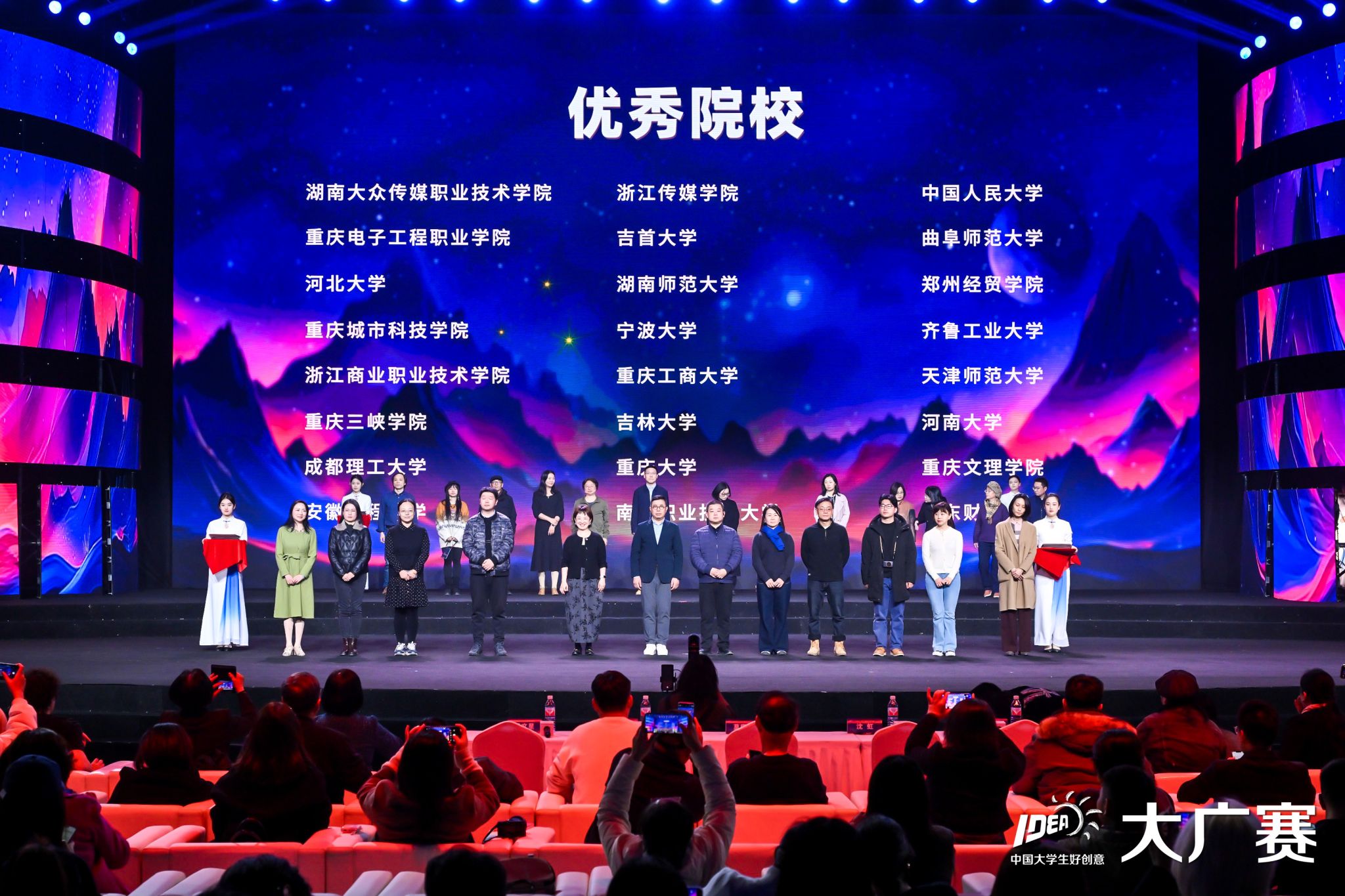 2024年11月23日,第16届大广赛学科竞赛成果展示盛典在北京隆重举行。教育部原副部长、中国高等教育学会原会长周远清、全国人大代表、中国戏剧家协会副主席、国家一级演员、再芬黄梅艺术剧院院长韩再芬、中国高等教育学会副会长、教育部高教司原司长张大良、教育部学生服务与素质发展中心党委书记、主任刘玉光、中国高等院校影视学会副会长兼秘书长张国涛等70余位嘉宾出席颁奖盛典活动。30位命题单位嘉宾,以及来自全国301所院校的近1700名师生到场参会。