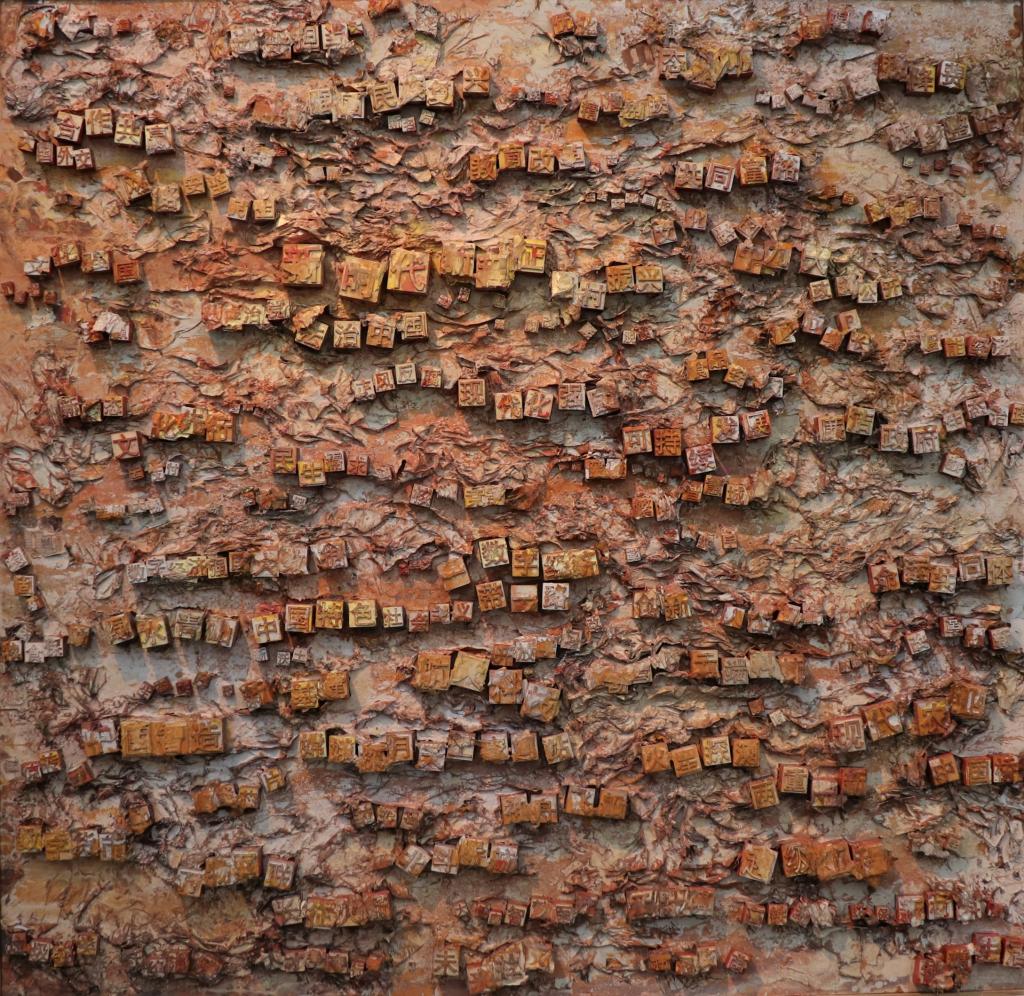 魏惠东 《当庄子遇见卡夫卡……Ⅳ》180×180,综合材料绘画,2020年