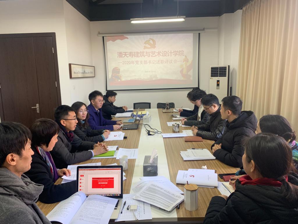 1月13日,学院在逸夫图书馆二楼会议室召开2020年度党支部书记抓支部党建工作述职评议会议,院党委委员、院团委、分工会负责人、各支部书记等参加。