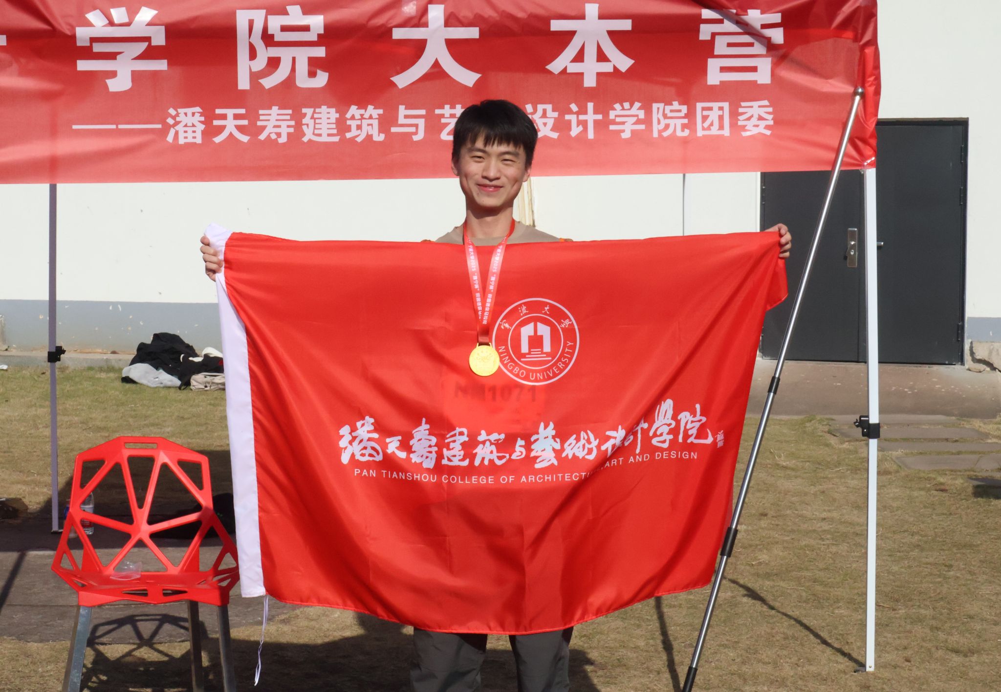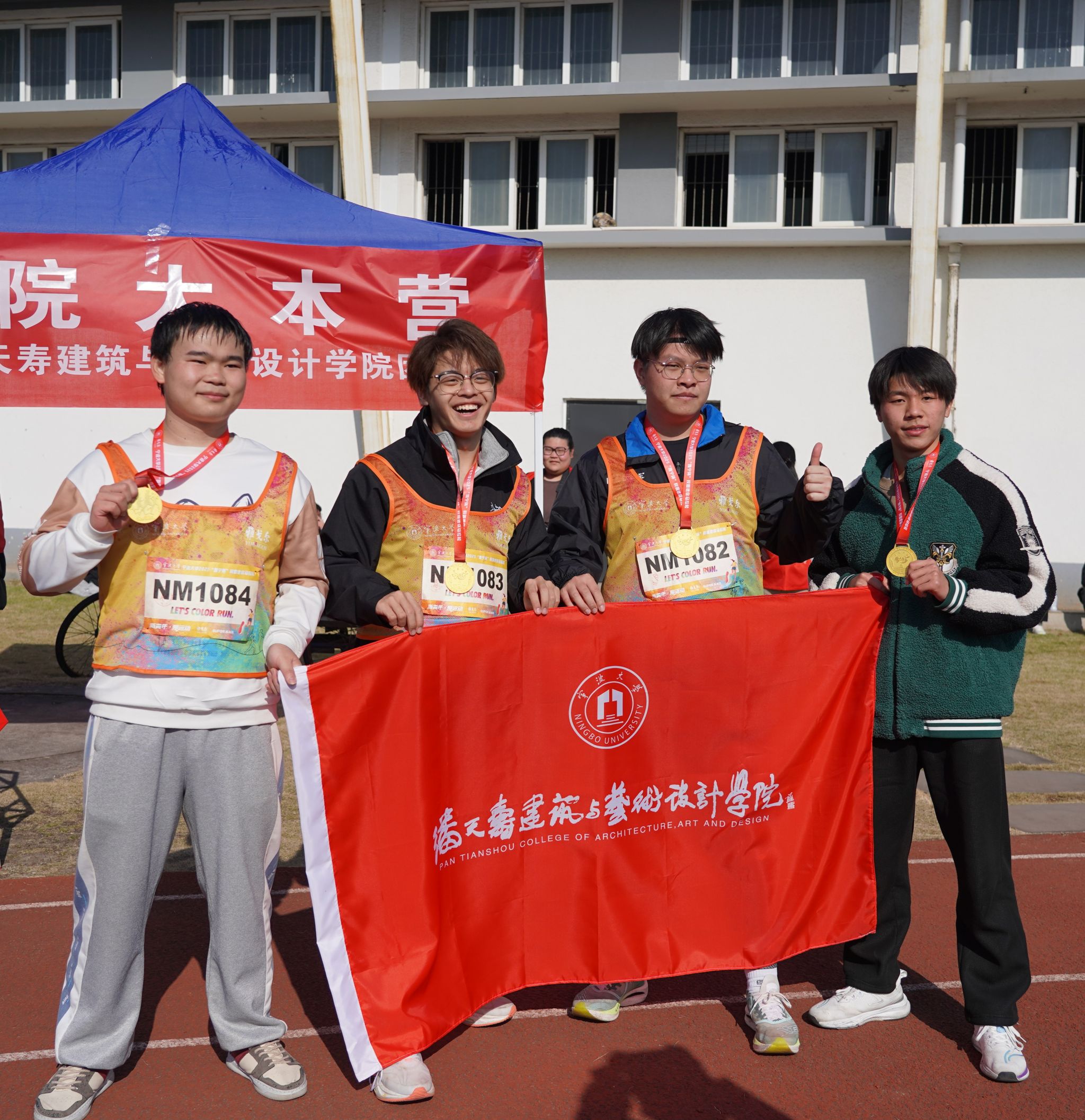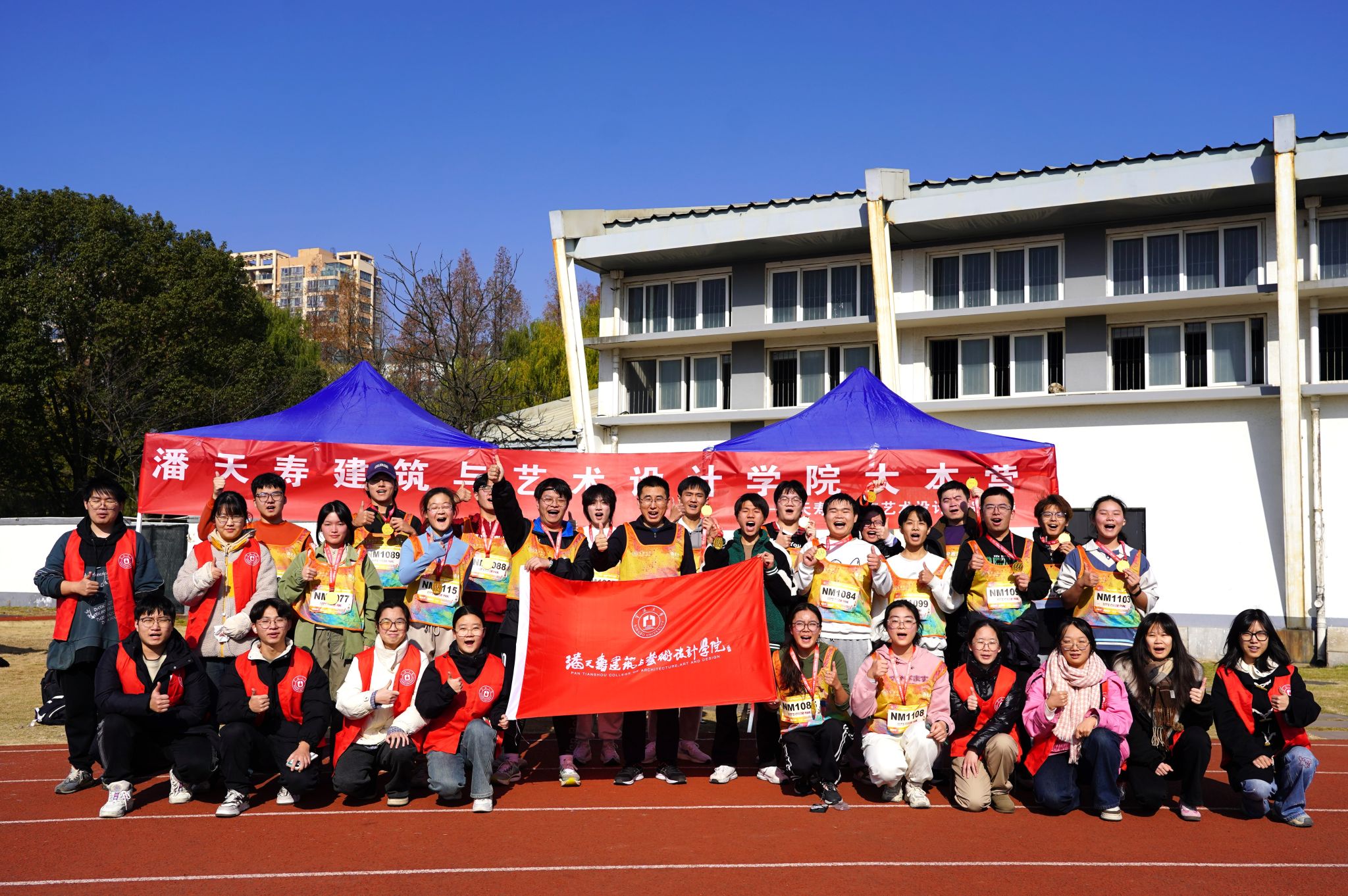 比赛全程共五公里,院旗在学子中传递着,同学们在清晨的柔光中,跟着指示,最后回到了东区操场进行领奖、拍照留念。
