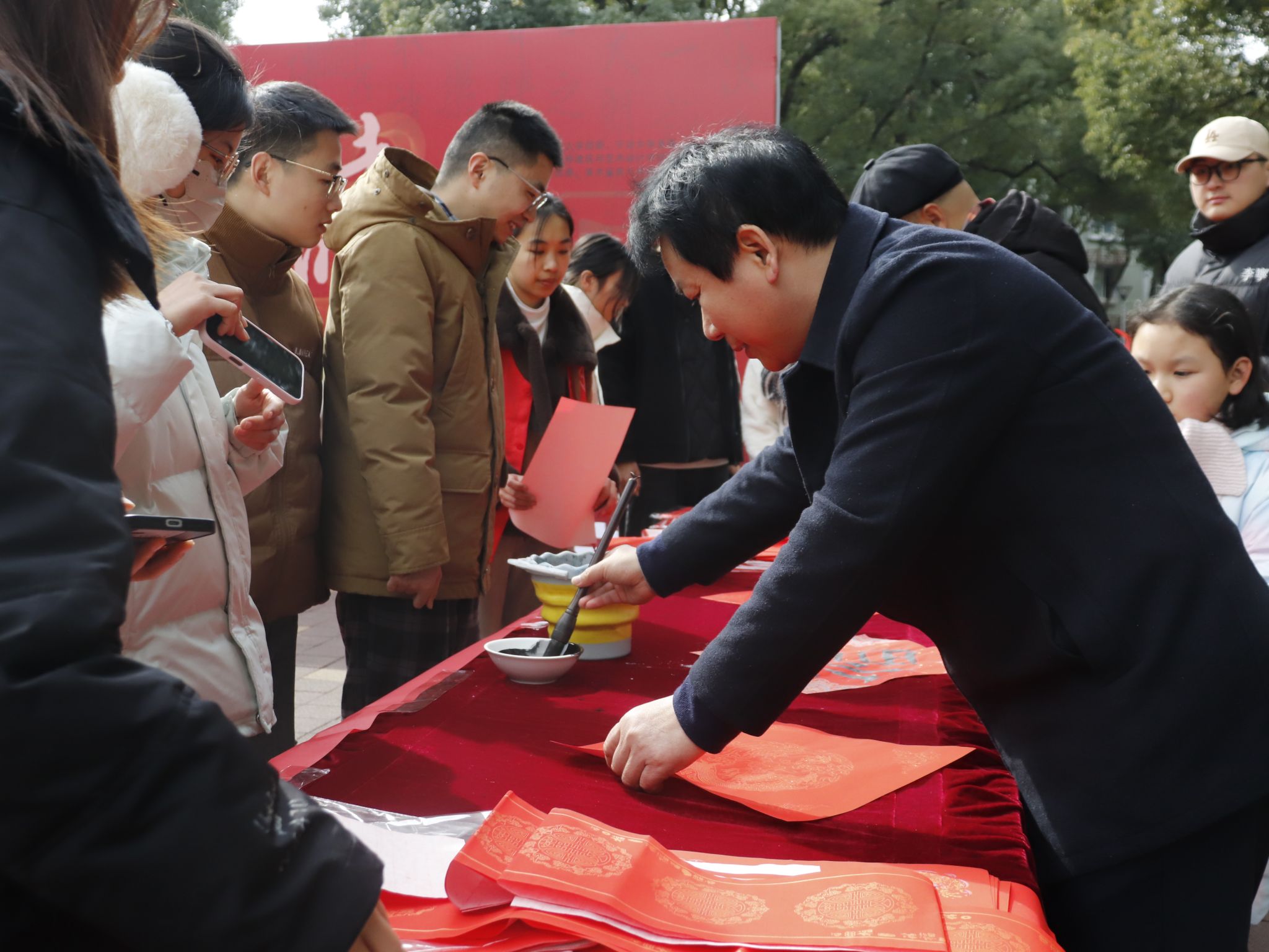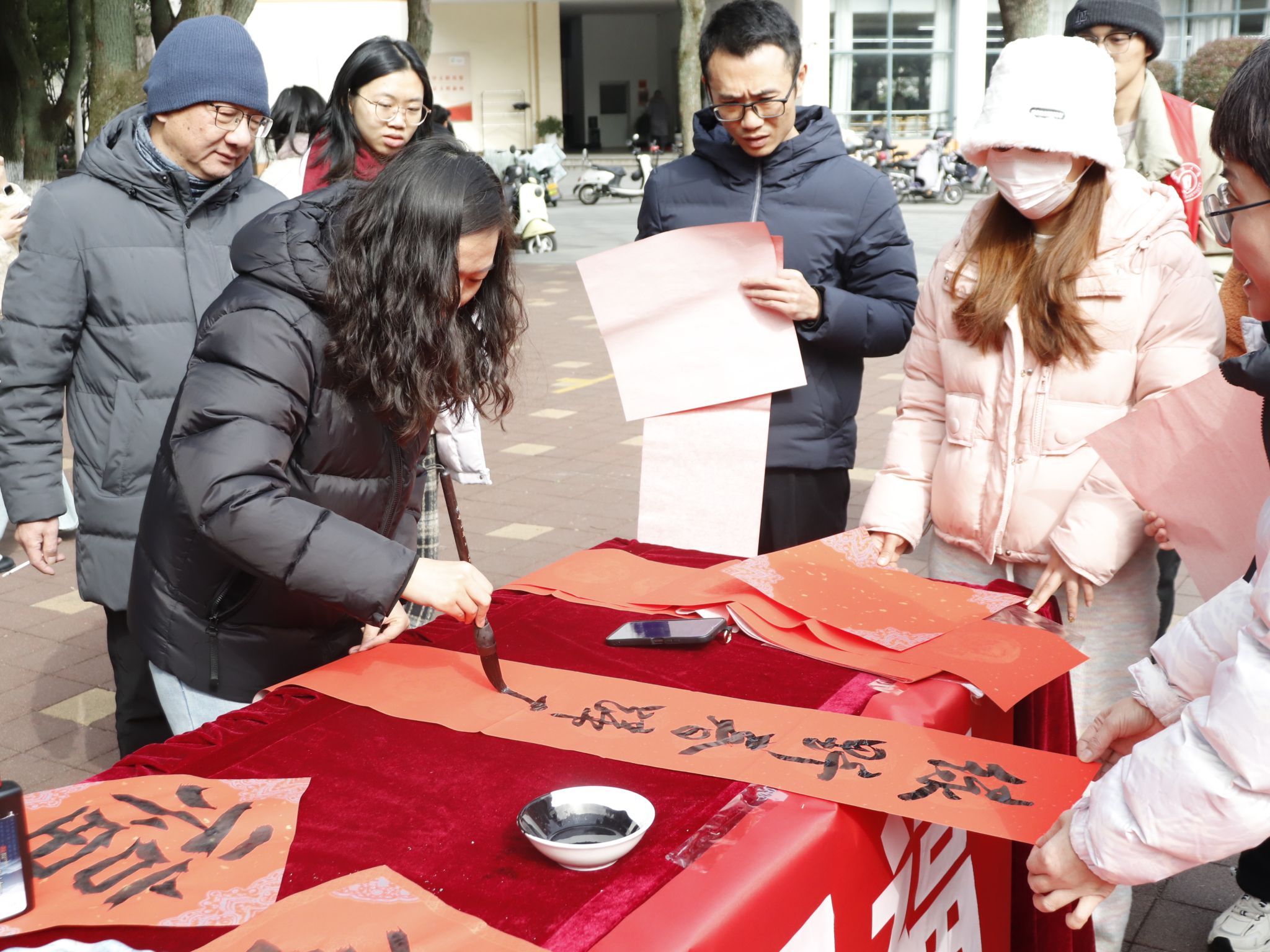 承办的行走的美育课堂——“写春联送祝福、风清气正迎新年”专场在有思广场举办,校长蔡荣根及广大师生热情参与,现场气氛热烈,充满了浓浓的年味和艺术氛围。