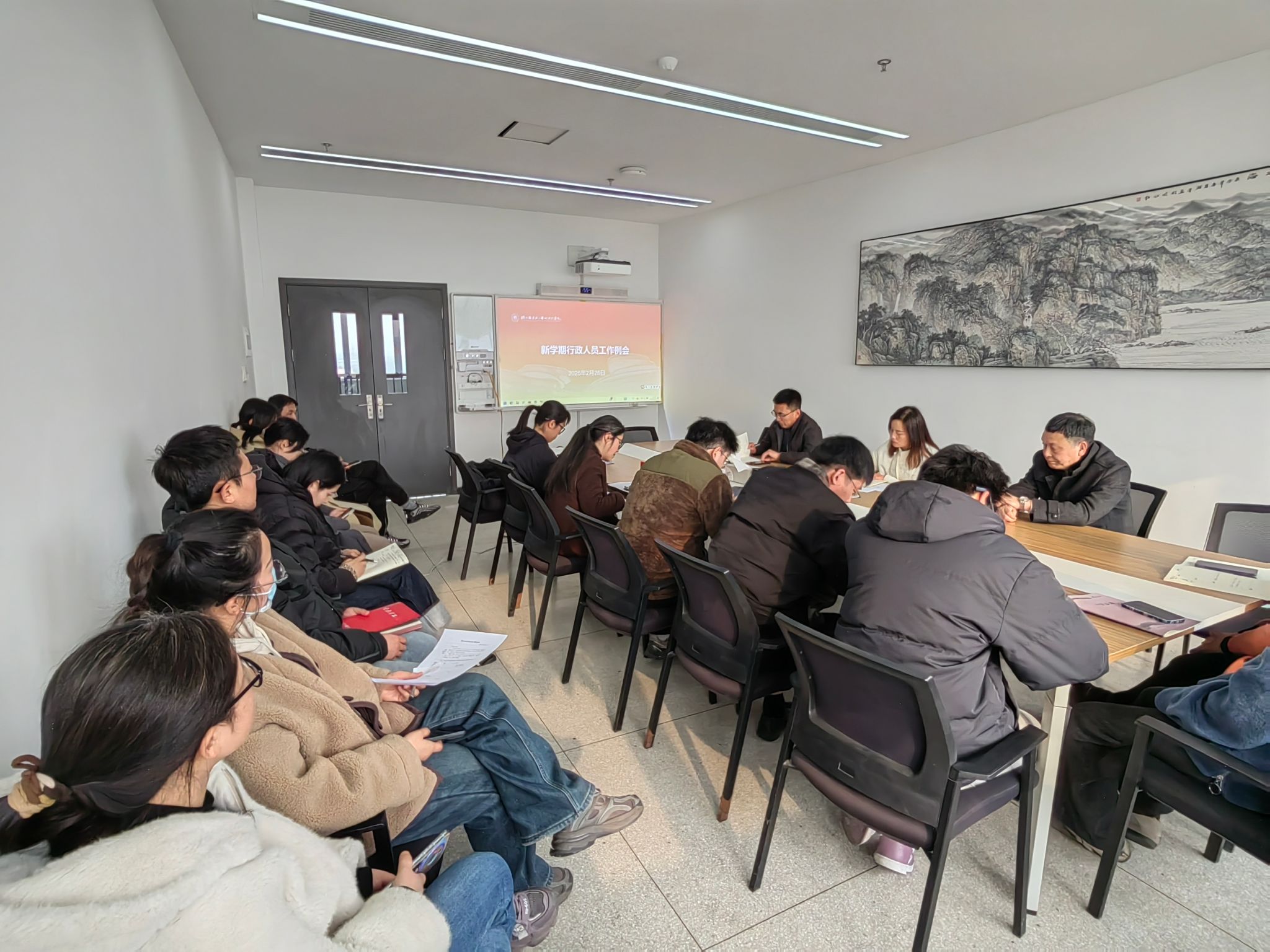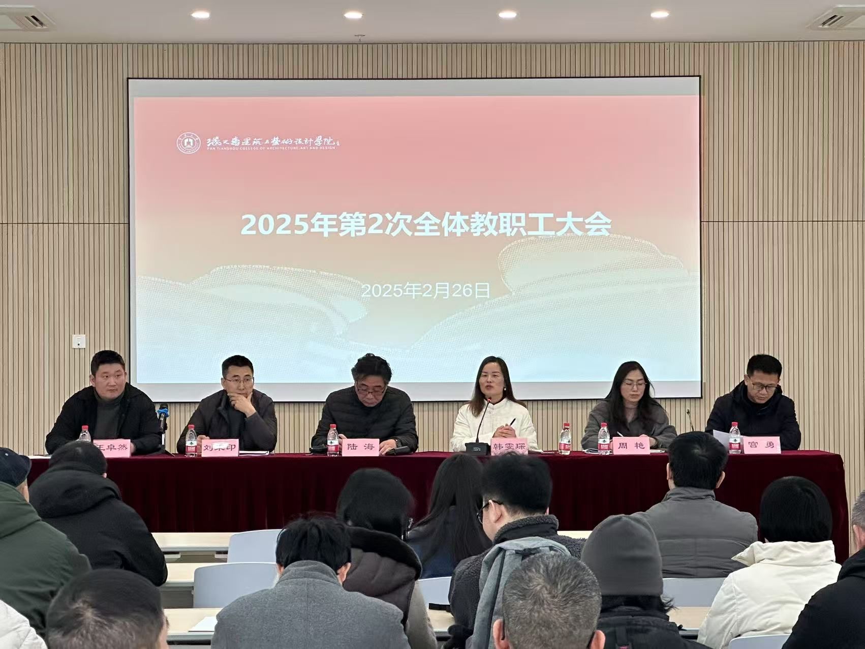 2月26日下午,潘天寿建筑与艺术设计学院在学院教学楼213会议室召开新学期全院教职工大会,会议由院党委书记韩雯琛主持,学院领导班子成员及全院教职工参加。