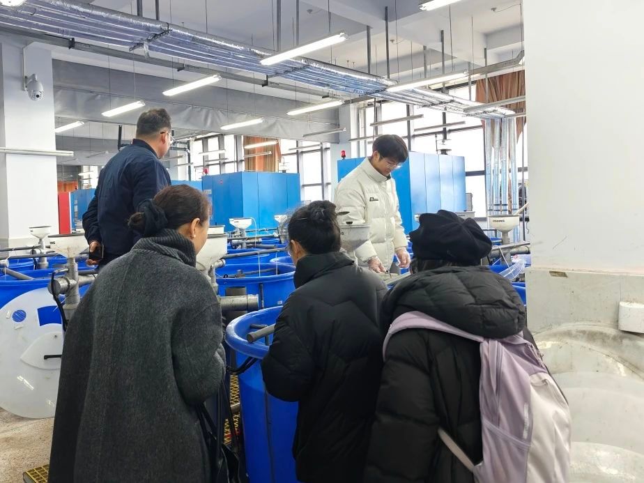 在杨锐老师的引导下,潘艺团队首先走进海洋学院中试基地,近距离观察智能化养殖系统的运作,聆听科研人员讲述“鲳鱼如何人工养殖”的科技攻关故事。随后,团队成员在海洋生物陈列室中通过数百件标本,系统认知东海海域生物多样性;步入海洋学院发展历程馆时,一代代海洋人扎根滩涂、突破种种壁垒的创业历程更令师生深受触动。海洋科学的魅力不仅在于技术突破,更在于背后的人文故事,这也正是艺术创作的宝贵素材。