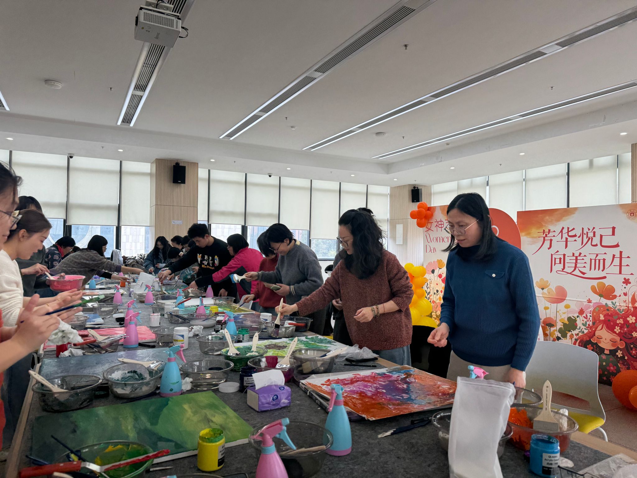 分工会于3月6日成功举办了 “以绘为乐,艺趣无穷” 综合材料绘画艺术体验活动。活动吸引了全校众多女教职工热情参与,大家在艺术创作中畅享自由,释放活力。