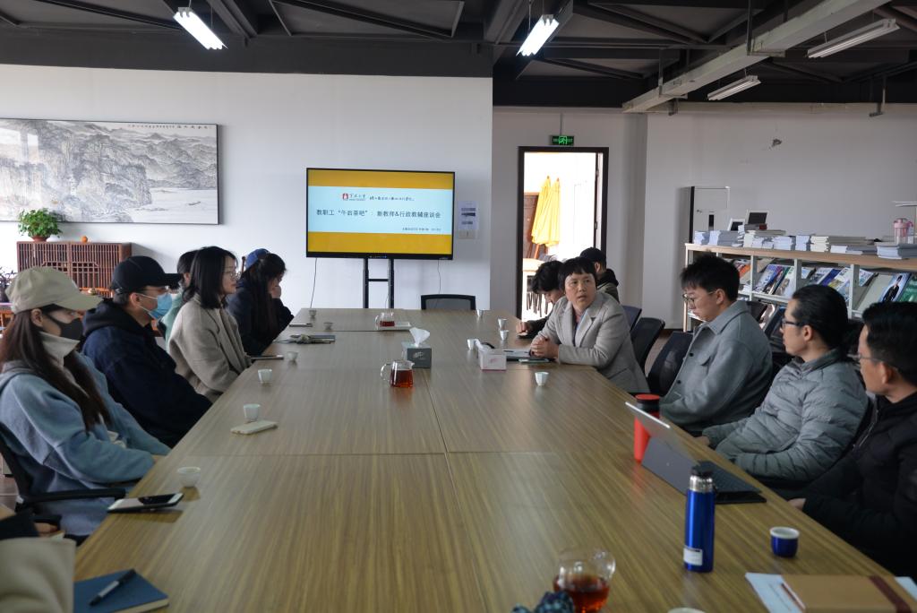 在邵逸夫图书馆五楼召开新教师 行政教辅座谈会。本次活动也是学院教职工“午后茶吧”主题活动第一期。座谈会由院党委书记徐一萍主持,近三年新引进教师以及全体行政教辅人员参加。