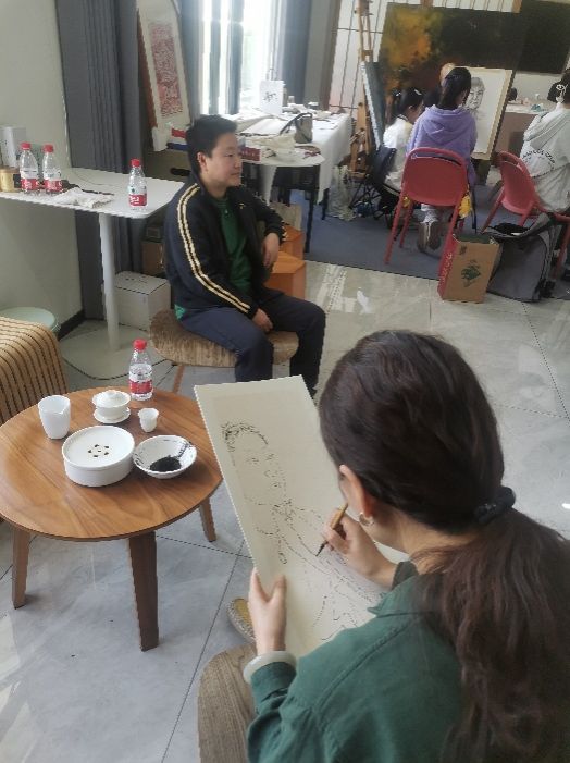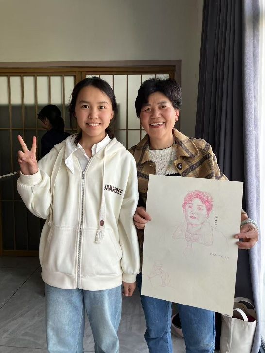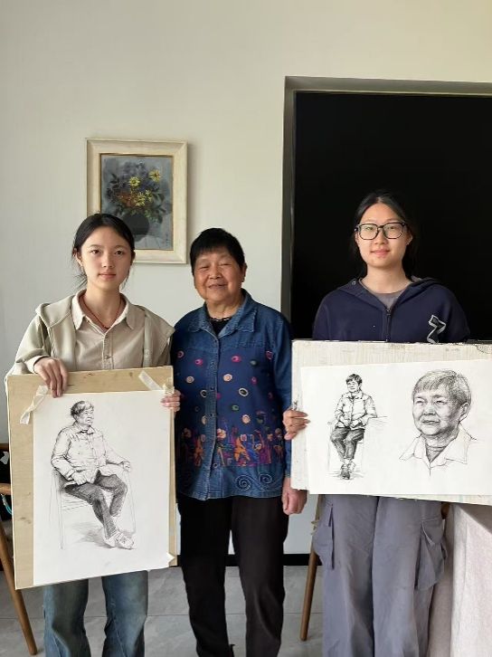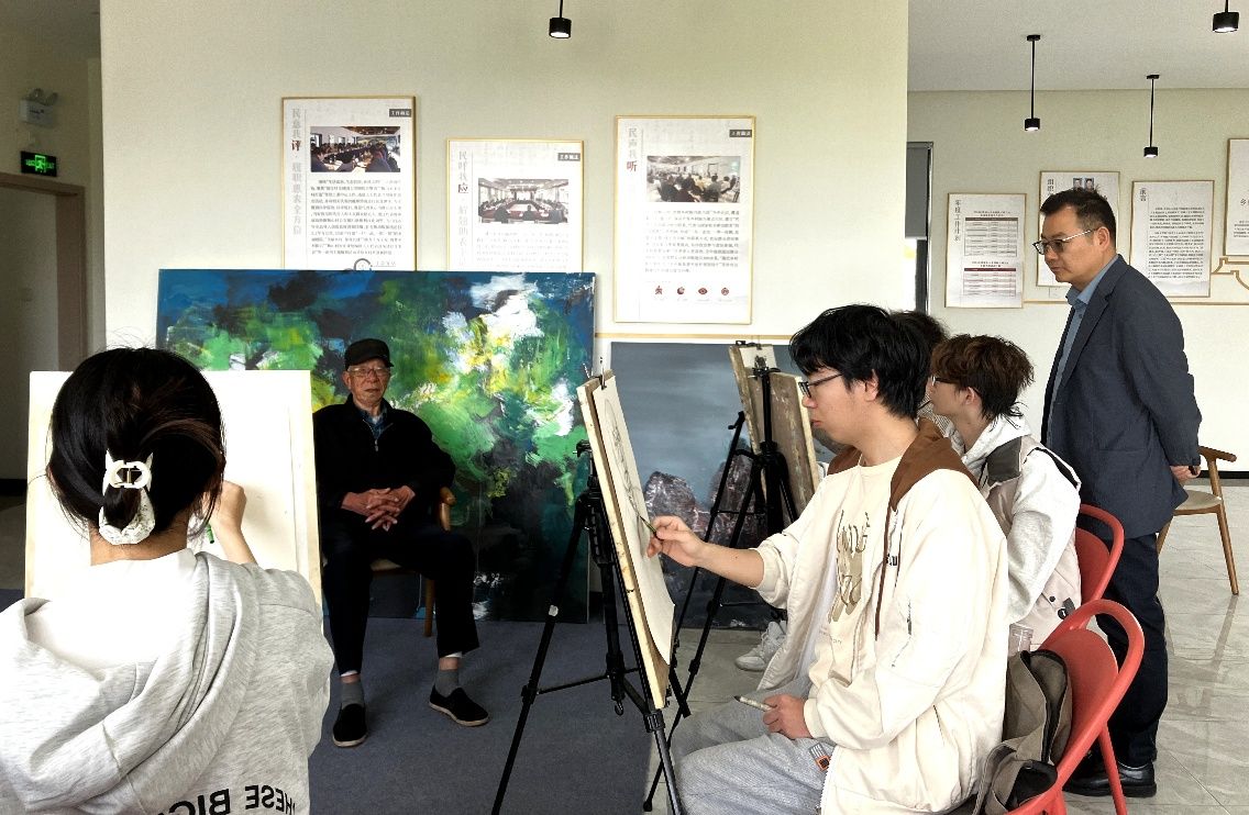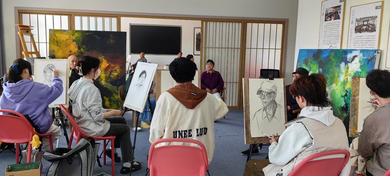 随后,师生分组为村民进行肖像创作,优先服务老党员和高龄老人。上午场创作持续至11时30分,学生以专业技法捕捉人物神韵,一幅幅生动作品跃然纸上。午间,鞍山村为师生准备了简餐,双方在轻松氛围中交流村史民情,深化了彼此了解。下午的创作延续至16时,师生共完成30余幅肖像作品,部分村民现场收到画作后感慨:“没想到能在家门口得到这么专业的画像,很感动!”