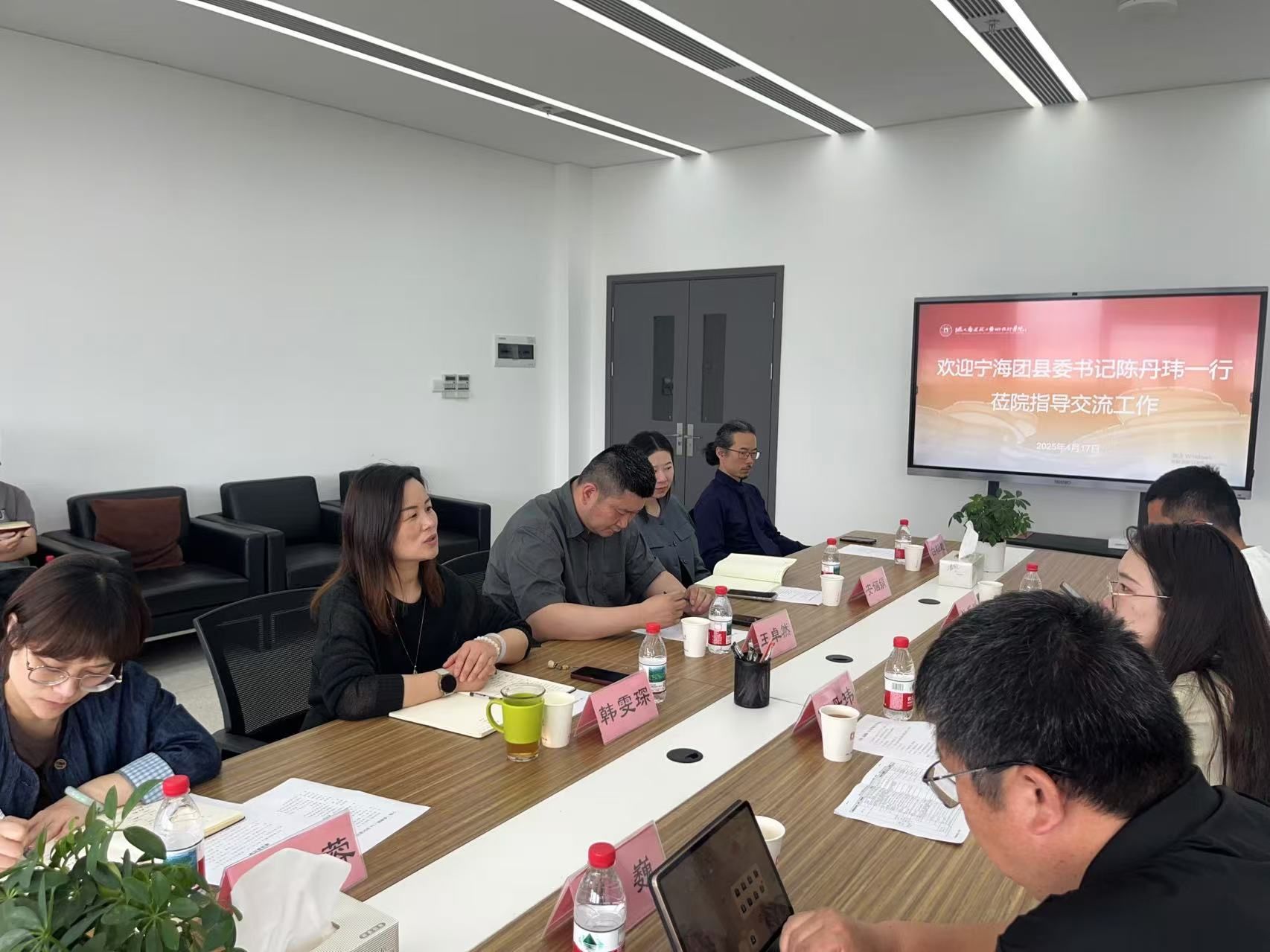 4月17日上午,宁海团县委书记陈丹玮一行来学院交流。会议在学院706会议室召开,本次会议由学院党委书记韩雯琛主持,学院副院长王卓然、洪蓉蓉老师、建筑系主任安婳娟、人文空间设计研究所主任姜文炜、视传与数媒设计系教师白松旭参加。