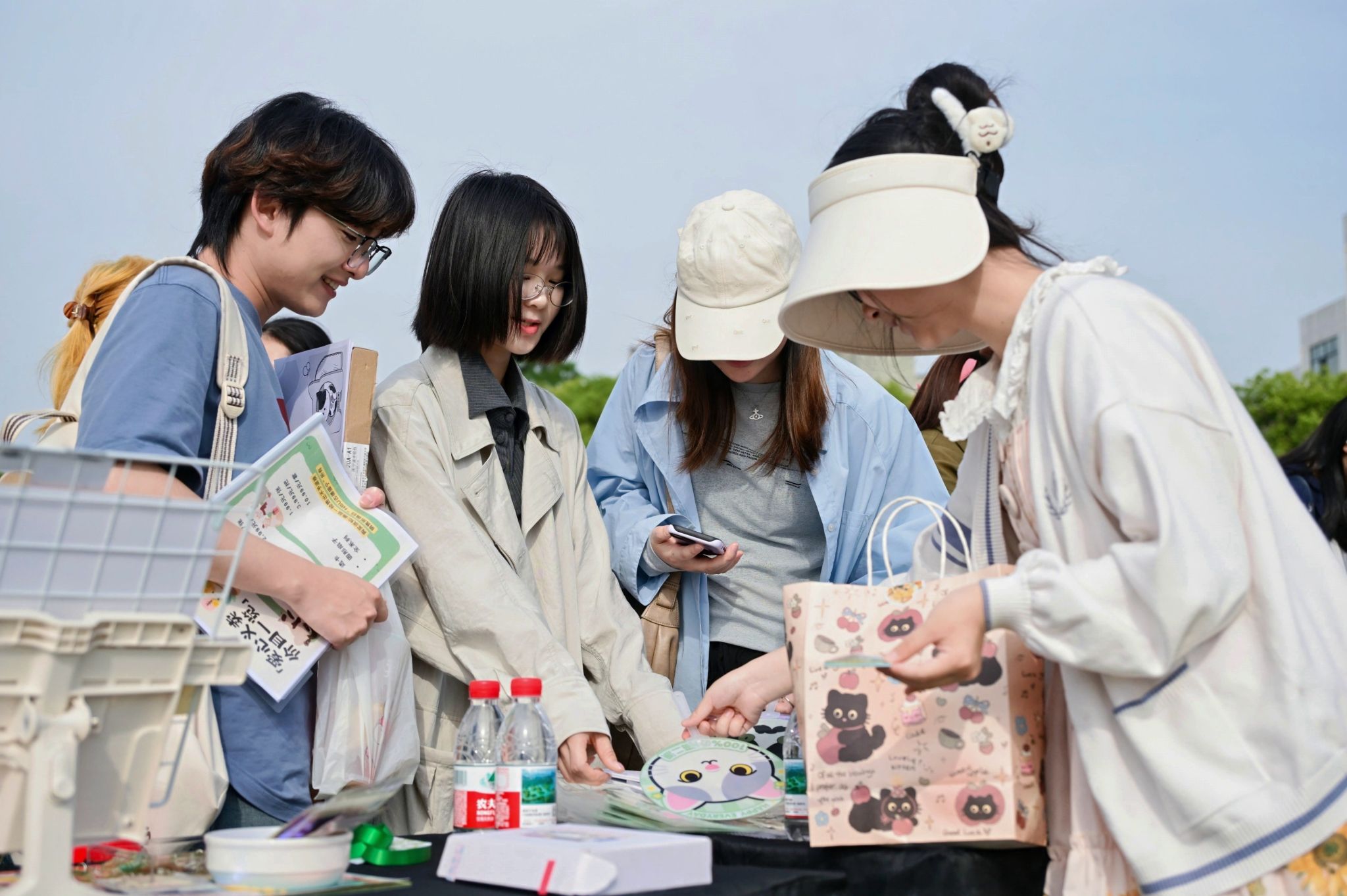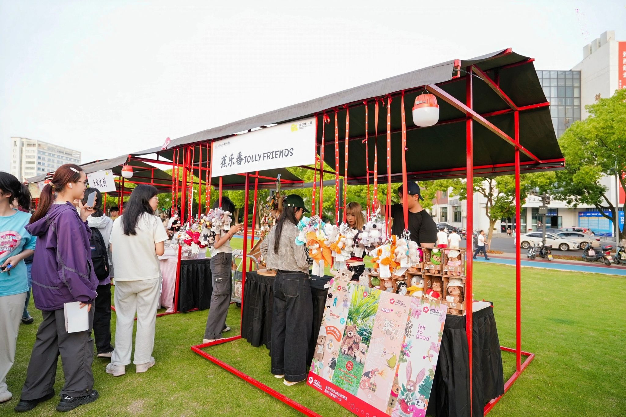 集市内,竹编、香包、青瓷、土布等非遗产品在现代设计理念的碰撞中焕发新的活力。百余件由老师、校友、学生创作的原创作品惊艳亮相。这些作品不仅展现了老师、校友、学生天马行空的创意思维,更体现出他们对传统文化的传承与创新,将古老元素与现代设计理念巧妙结合,为传统文化注入新的活力。