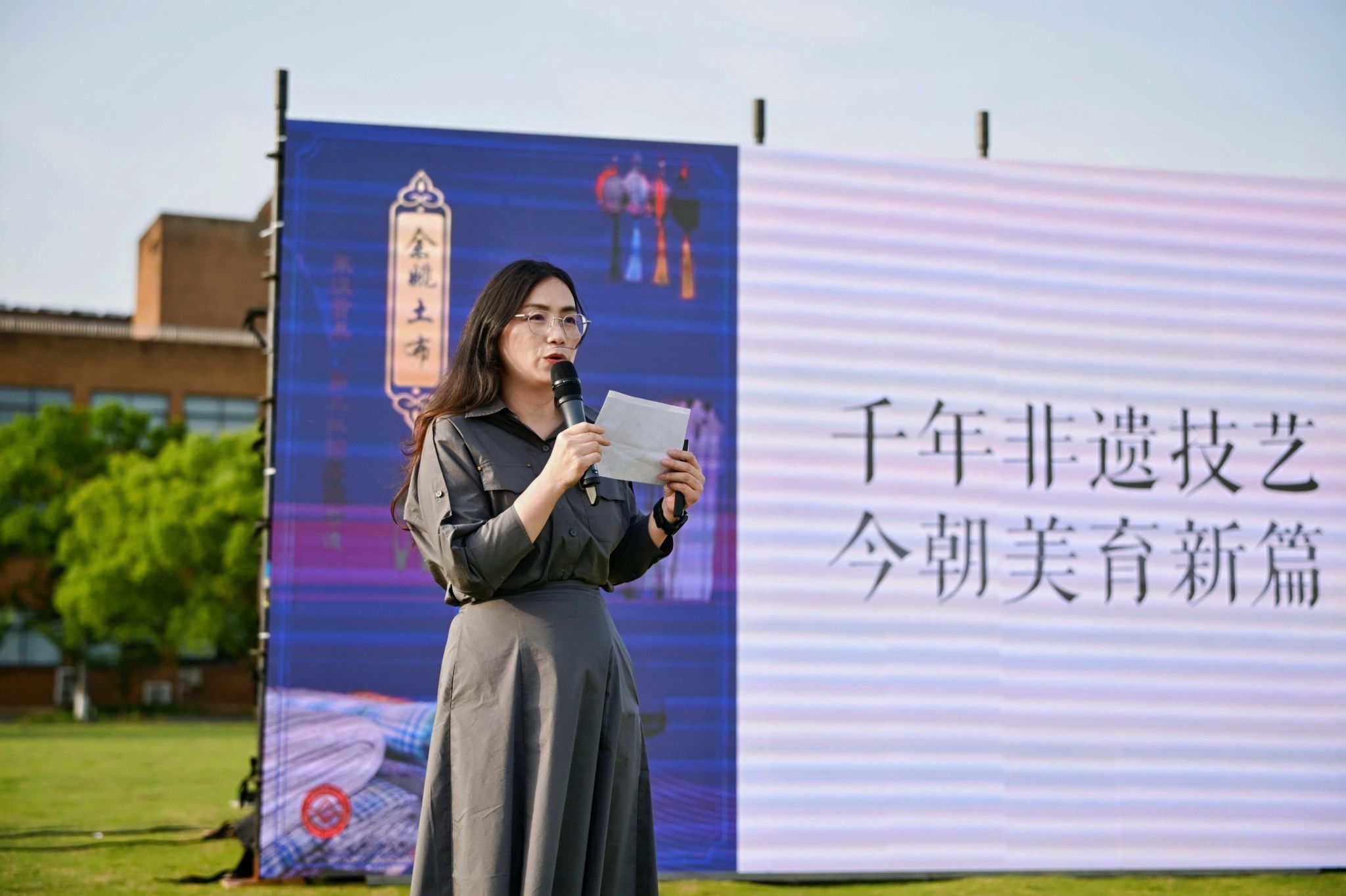 现场,一节生动有趣的美育微课吸引了众人的目光。“艺启集合”创意市集工作室负责人周艳老师和“书法·美术+X”美育创想工作室负责人梅娜芳老师分别介绍了“余姚土布”非遗文化和雅集文化,她们用生动有趣的方式,引导同学们发现美、欣赏美、创造美,这场“行走的美育课堂”,让美育真正融入师生日常。