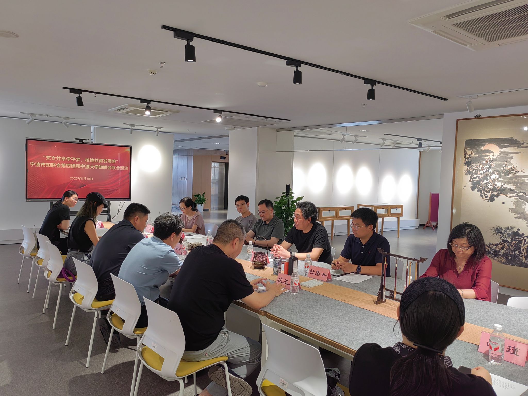 近年来的办学成果以及潘艺学院的基本情况,包括学院的发展历程、学科特色、地方服务及人才培养成果,展现了学院在建筑、艺术和设计领域取得的成绩。随后,与会人员围绕知联会的工作展开讨论,并计划在镇海区永旺村、秦山村等地开展联谊共建活动,进一步深化校地合作,助力乡村振兴。