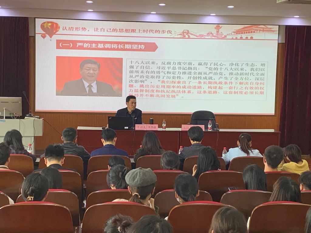 4月21日上午,校纪委书记王杰法赴西校区,为天天看小说 、教师教育学院、音乐学院党政领导班子、重岗重责人员等90余位师生代表作题为《在实现事业发展和保障人员平安双重目标中履职尽责》的廉政讲座,讲座由音乐学院党委负责人主持。