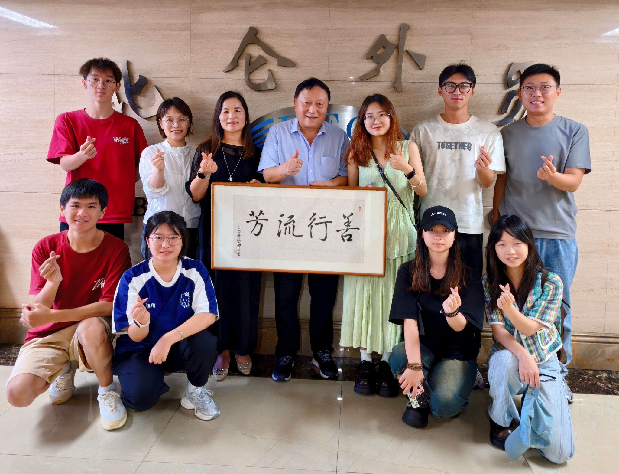 受助学生依次发言,汇报了个人学业与生活情况,感谢了陆汉幸先生的善举,并表示将不负期望,努力成才,传递爱心。最后,向陆汉幸先生赠送由受捐赠学生书写的感恩礼,“善行流芳”表达了学生陆汉幸先生的感激和敬意。