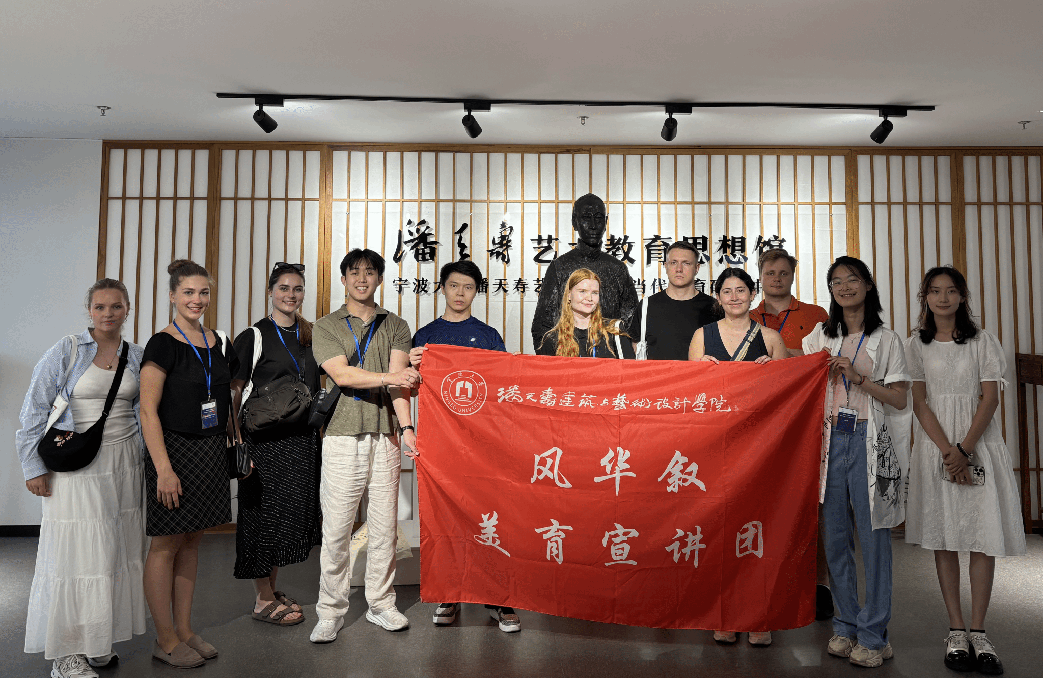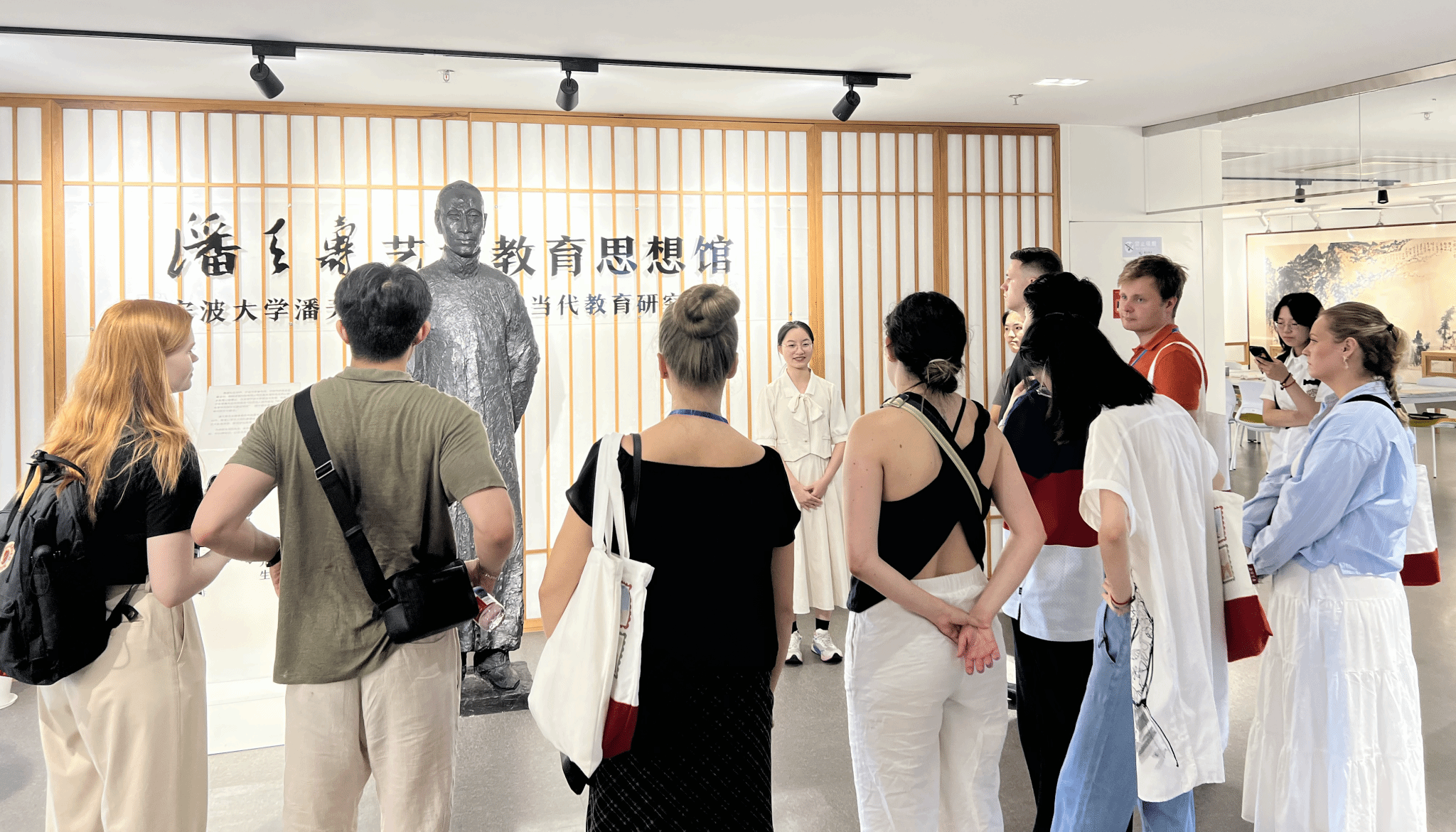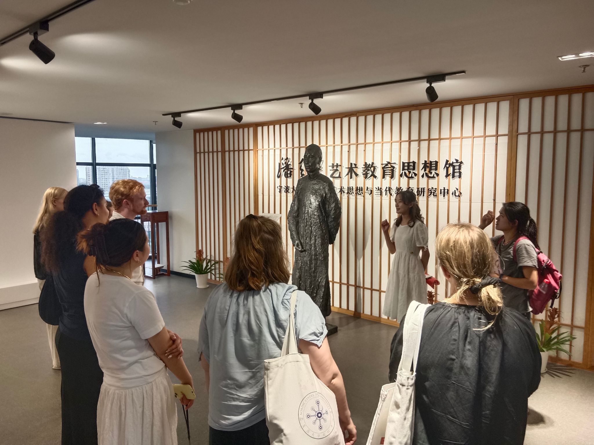 7月18日下午,来自北欧中心的师生代表三十余人参观了潘天寿艺术教育思想馆,学院“风华叙美育宣讲团”成员作讲解。