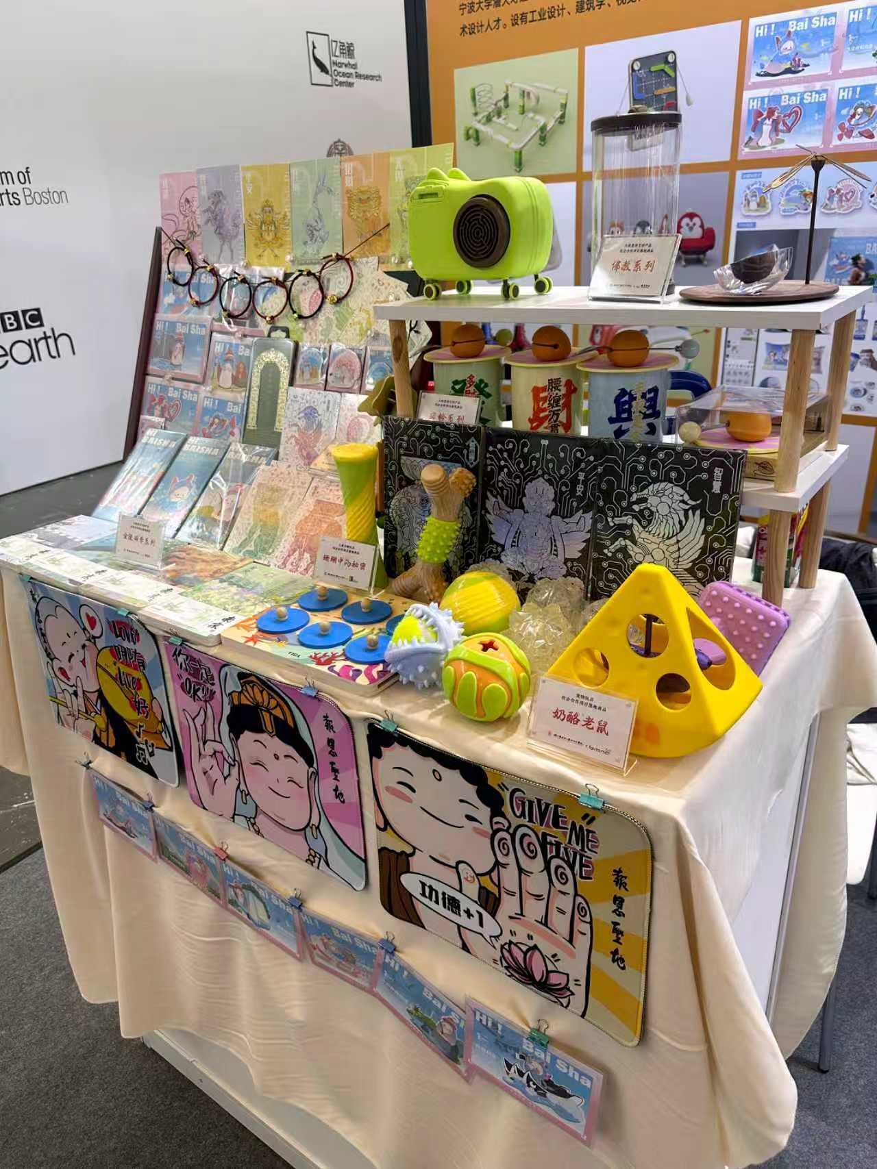 此次参展作品由工业设计系负责组织与筹划,重点展示了近五年来文创产品方向许江副教授团队与相关企业开展产教融合教学所取得的相关教学成果。展品均为已生产落地的商品,包括: