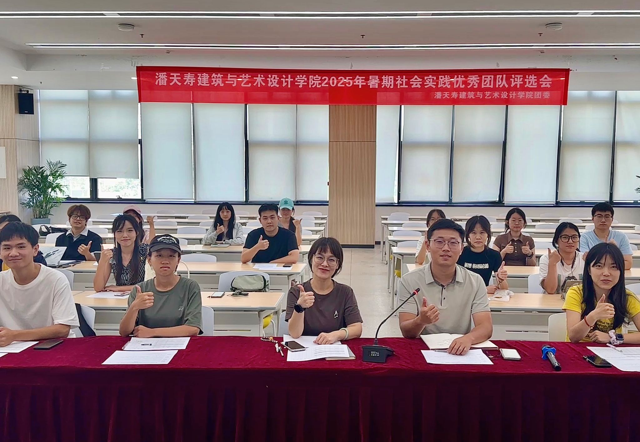 于213报告厅举行2025年暑期社会实践优秀团队评选会。学院学生工作负责人(挂职干部)洪蓉蓉、团委副书记程锦及2025年暑期社会实践各团队队长参加此次会议。