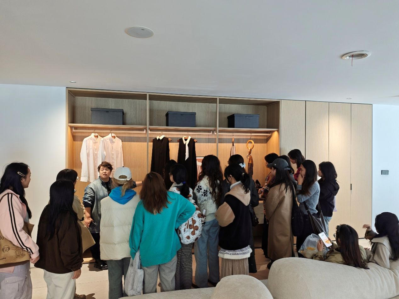 活动伊始,郑会长带领同学们目睹了诺维亚家居的展示区域,学生们直观地看到了设计从图纸落地的全过程。