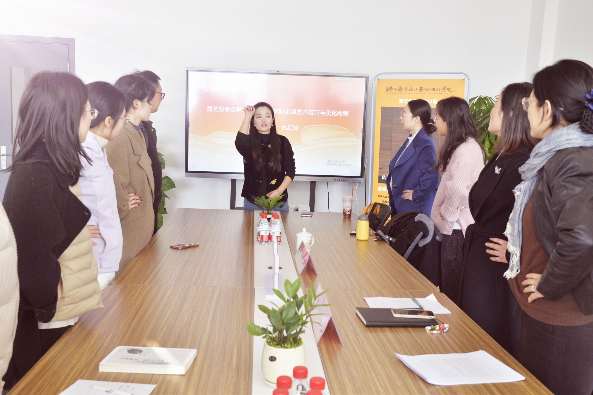 为切实帮助广大教师解决授课过程中的用嗓难题,科学缓解声带疲劳,进一步提升课堂语言表达的感染力与吸引力,11月20日下午,学院党委特邀请声乐表演博士仇红玲走进学院第十二期“潘艺叙事会”,开展主题为“高校教师上课发声技巧与美化秘籍”的分享活动。本次活动由学院党委和关工委联合举办,吸引了近二十名教师参加,由学院党委书记韩雯琛主持。