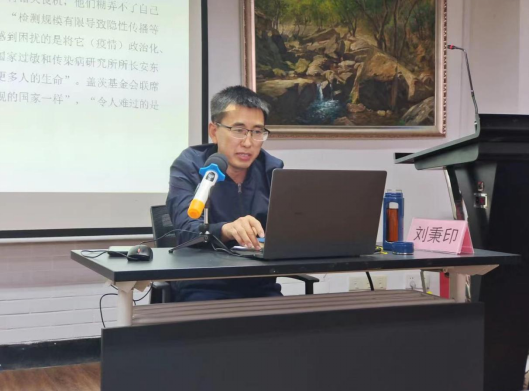 刘秉印副书记开始党课第一讲《参与历史、见证历史、创造历史——争做有理想有本领有担当的时代青年》。刘书记首先援引了习近平总书记的讲话,从历史是什么、历史的重要性、怎样传承历史、怎样学习历史四个方面介绍了习近平总书记的历史观。通过展示校内外大学生积极参与抗击新冠疫情的事例,例举国内外疫情防控截然不同的局面彰显出的中国特色社会主义制度优势,刘书记指出同学们其实亲自参与并见证了历史。最后,刘书记强调青年人要立志、修德、勤学、担当、奋斗、爱国、创新,相信同学们必将创造历史。