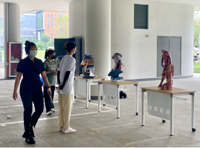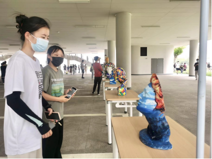 核酸检测后的师生欣赏周至禹教授的石膏彩绘作品