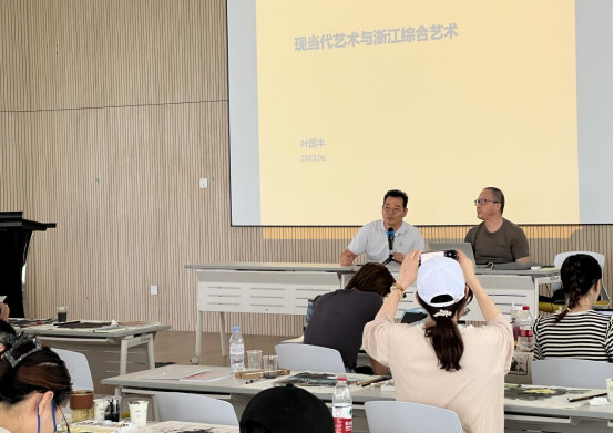 系列学术讲座12讲邀请到叶国丰教授,作了题为“现当代艺术与浙江综合艺术”的讲座。讲座由学院美术系主任陈晟老师主持。