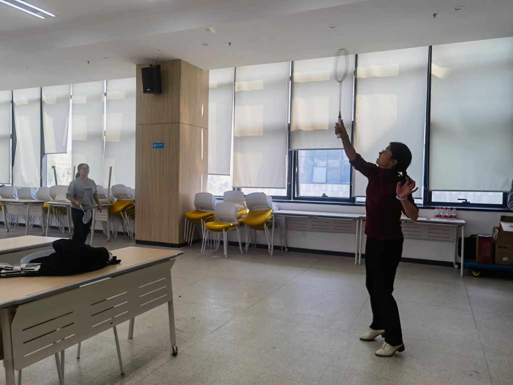 213室组织了一场以“冬日健身,其乐无穷”为主题的教职工趣味运动会。运动会包括乒乓颠球、飞盘抛接、投球入筐、踢毽子、跳绳等项目。