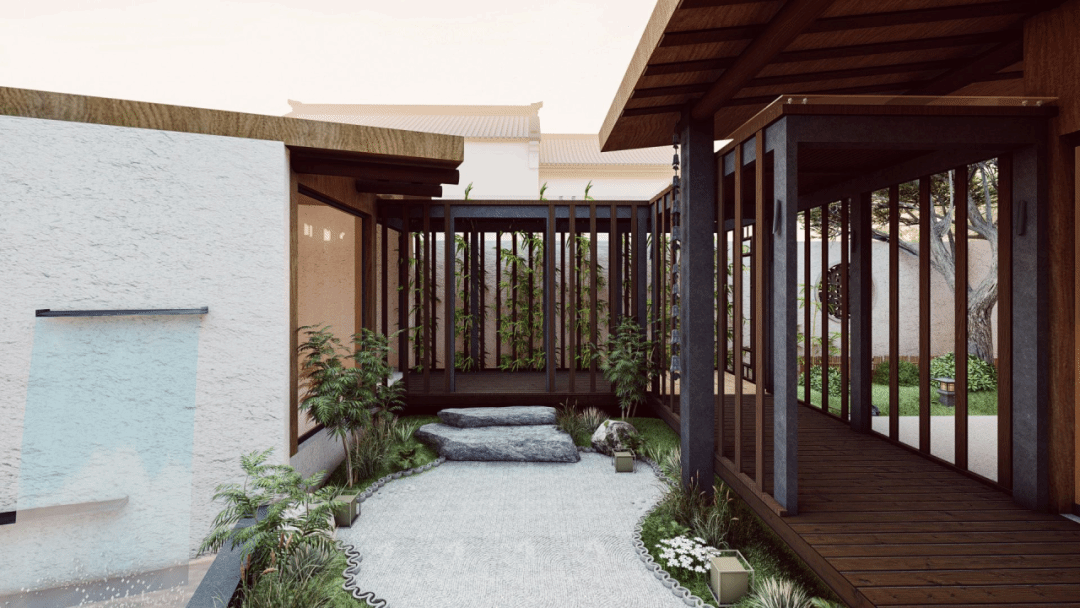 环境与家居设计系陶锋老师带领同学们实地参观象山县的案例庭院,并为学生具体讲述庭院中所运用到的材料、植物等,让大家了解庭院改造方面可以运用的设计手法和设计规范,并从中吸收归纳以便运用到后续对碶头陈村中的庭院改造中。通过专业老师的指导,同学们按照村民的意向对庭院进行改造升级,并取得了初步成效。(以下是效果图的展示)