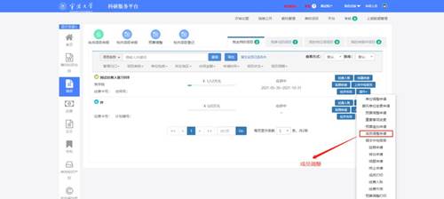 4. 进入项目组成员,请确认成员是否完整。特别是项目中有学生的参与的,请完善学生身份类别。成员信息有问题的,进入科研系统天天看小说,左侧的项目界面,点击操作下拉框下的成员调整申请,进入成员调整界面进行添加和修改,待项目主管审核之后,会自动补充到项目经费公开一览表,最后再提交即可。