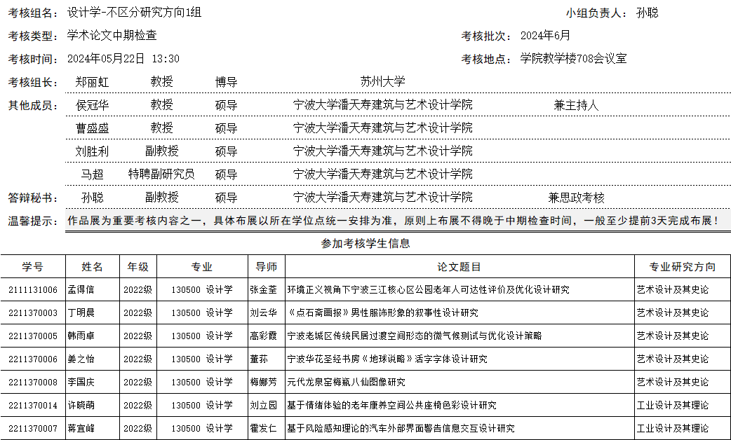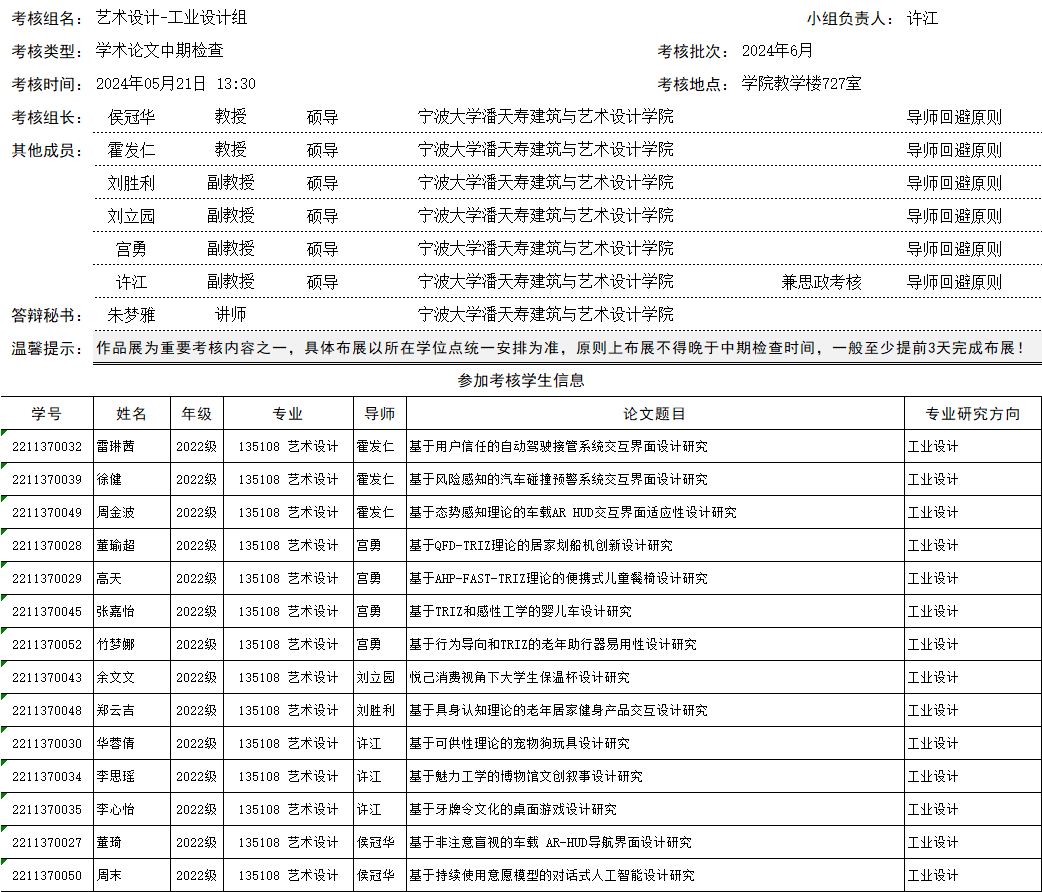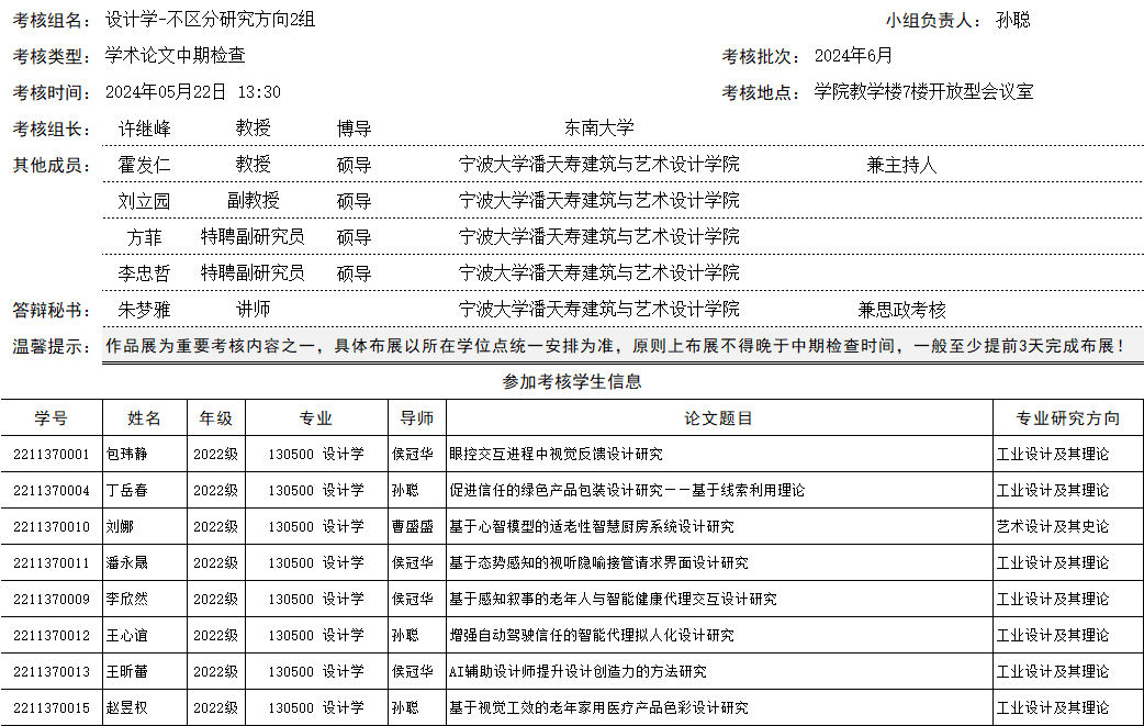 校级通知中期检查组织要求、检查内容、处理办法详见《关于开展2022级研究生学位论文中期检查的通知》(//graduate.ttkannovel.com/info/1025/19990.htm)
