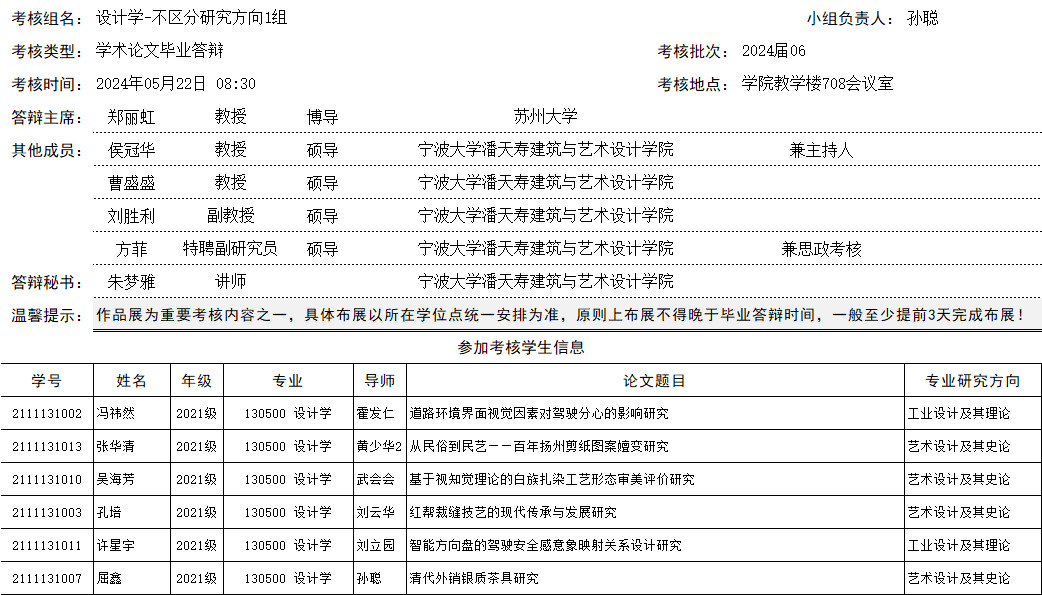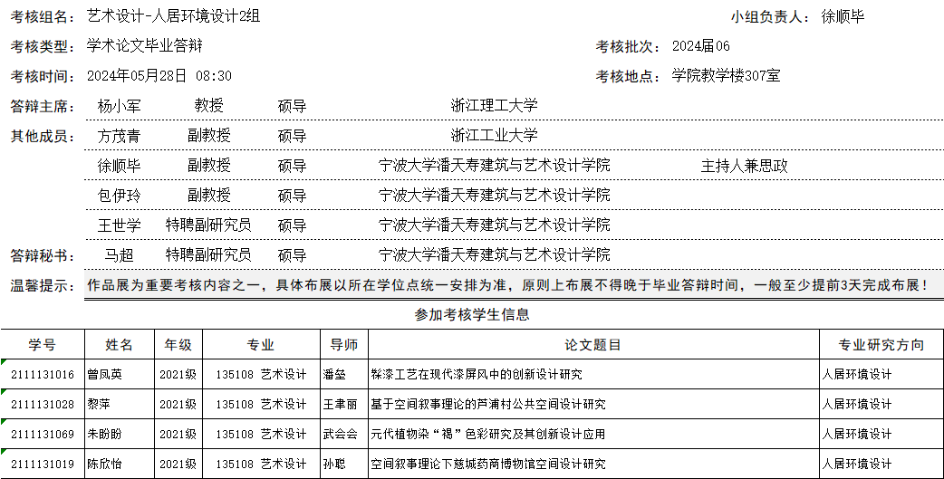 温馨提示:答辩所涉及材料不得晚于毕业答辩时间,一般要求至少提前3天内完成,如果材料不全或审核不通过,一律以不符答辩要求延期答辩。如果答辩组有特殊材料提交时间,早于最迟3天要求,须以答辩组安排为准。