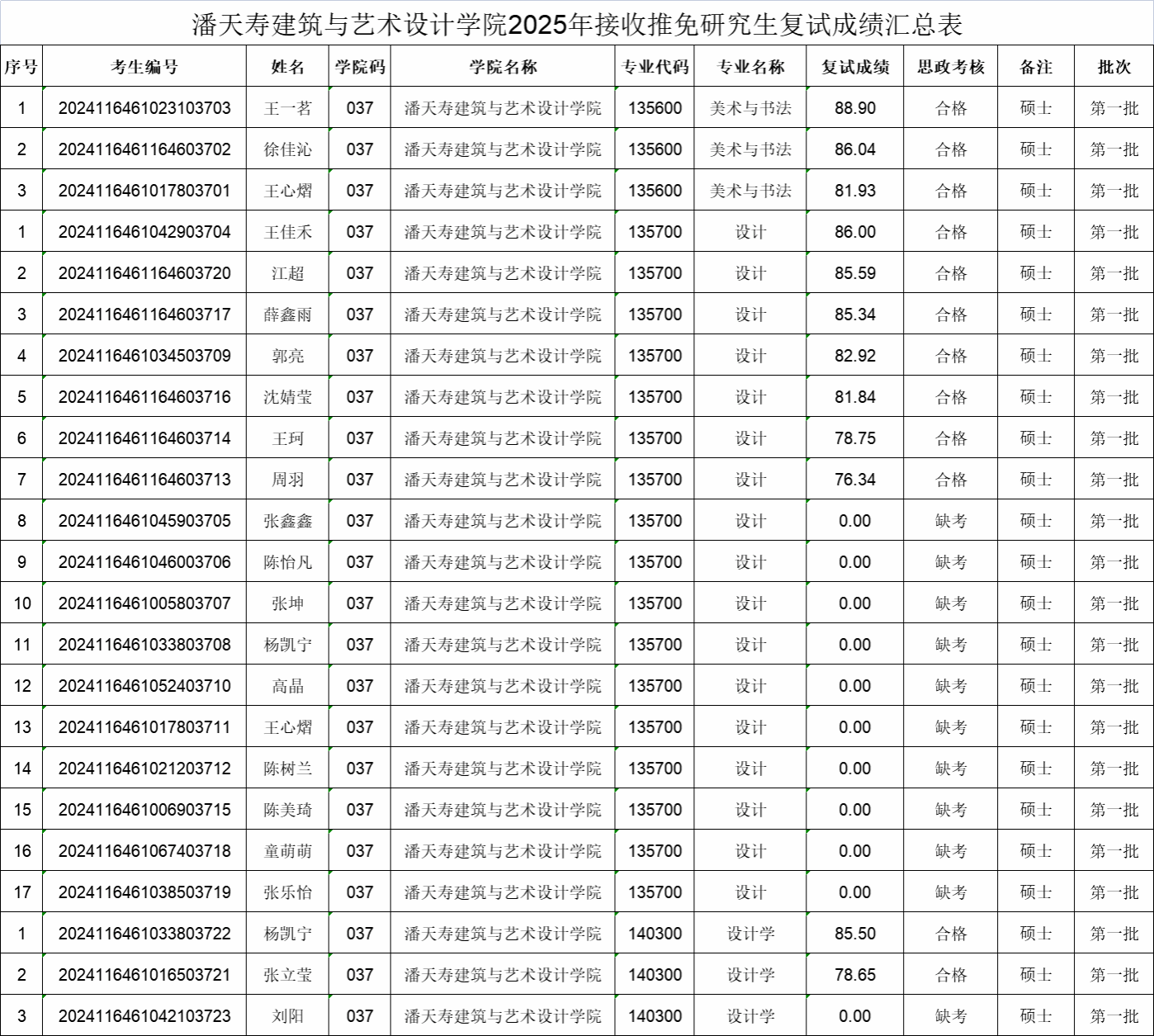 2025年接收推荐免试研究生复试面试成绩公示(第一批)