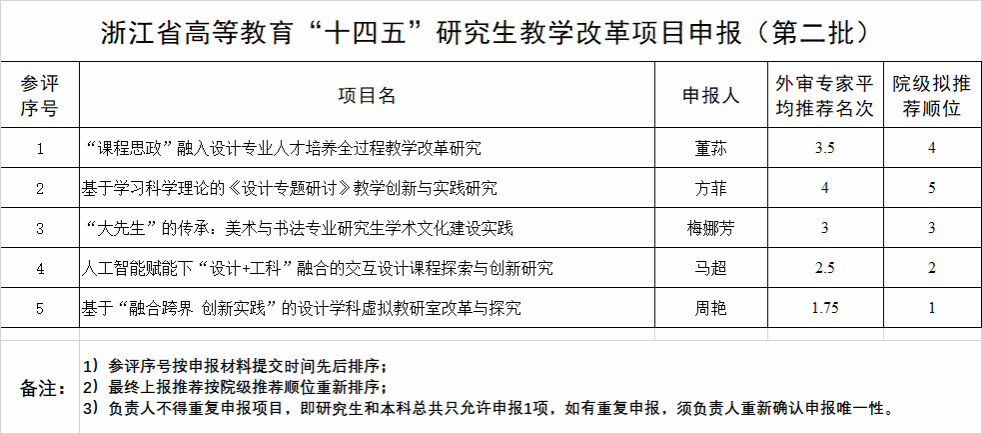 我院关于浙江省“十四五”第二批研究生省级教学改革项目申报材料外评结果公示