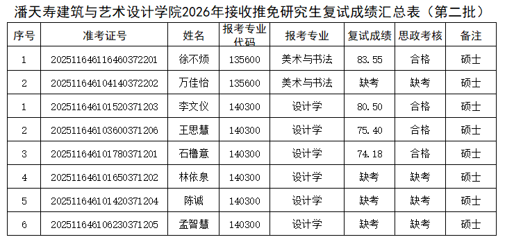天天看小说 2026年接收推免研究生复试成绩汇总表(第二批)