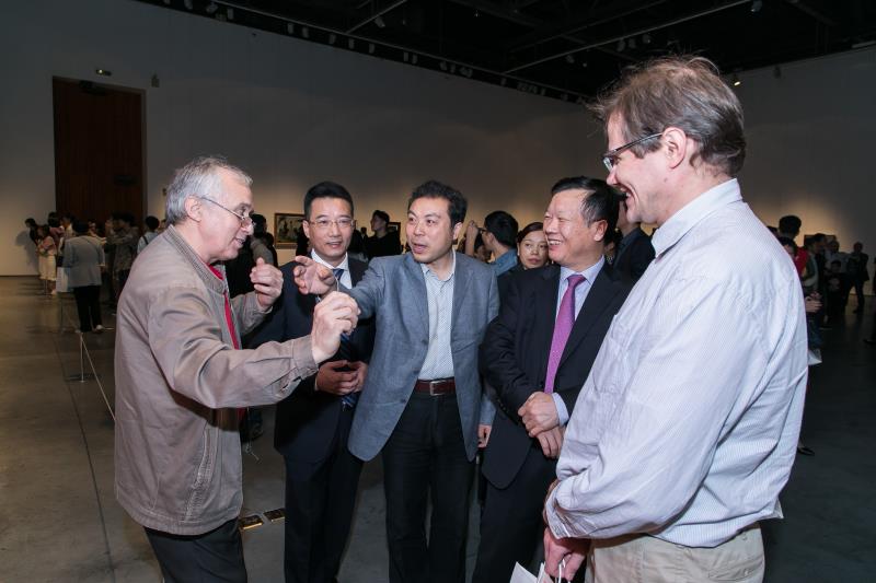 党委书记徐一萍等领导参加了开幕式。中国油画院副院长朱春林;中国油画院著名艺术家石磊;中央美术学院城市设计学院副院长田海鹏;俄罗斯列宾美术学院叶甫盖尼·祝波夫;尼基塔·法明;亚历山大·诺沃肖洛夫;拉斐尔·苏莱曼诺夫;保加利亚艺术家卡拉利夫·柳博米尔·斯特凡诺;德拉甘诺夫·柳博米尔·尼科尔切夫;科斯托夫·康斯坦丁·佩特科夫等中外艺术家代表出席了开幕式。薛维海书记、朱春林副院长、叶甫盖尼·祝波夫、朱达书记分别致辞,郁伟年主席宣布画展开幕,邵千钧副校长主持开幕式。